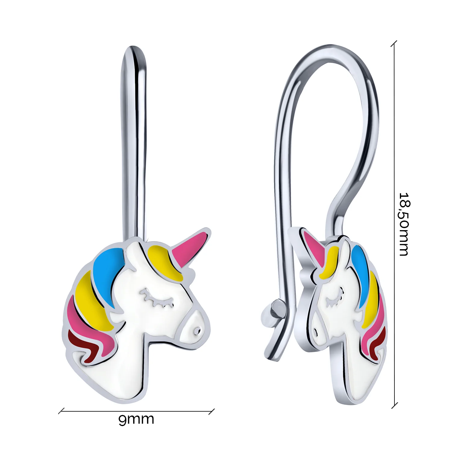 Сережки-петлі дитячі срібні з емаллю "Єдиноріг" - 2011435