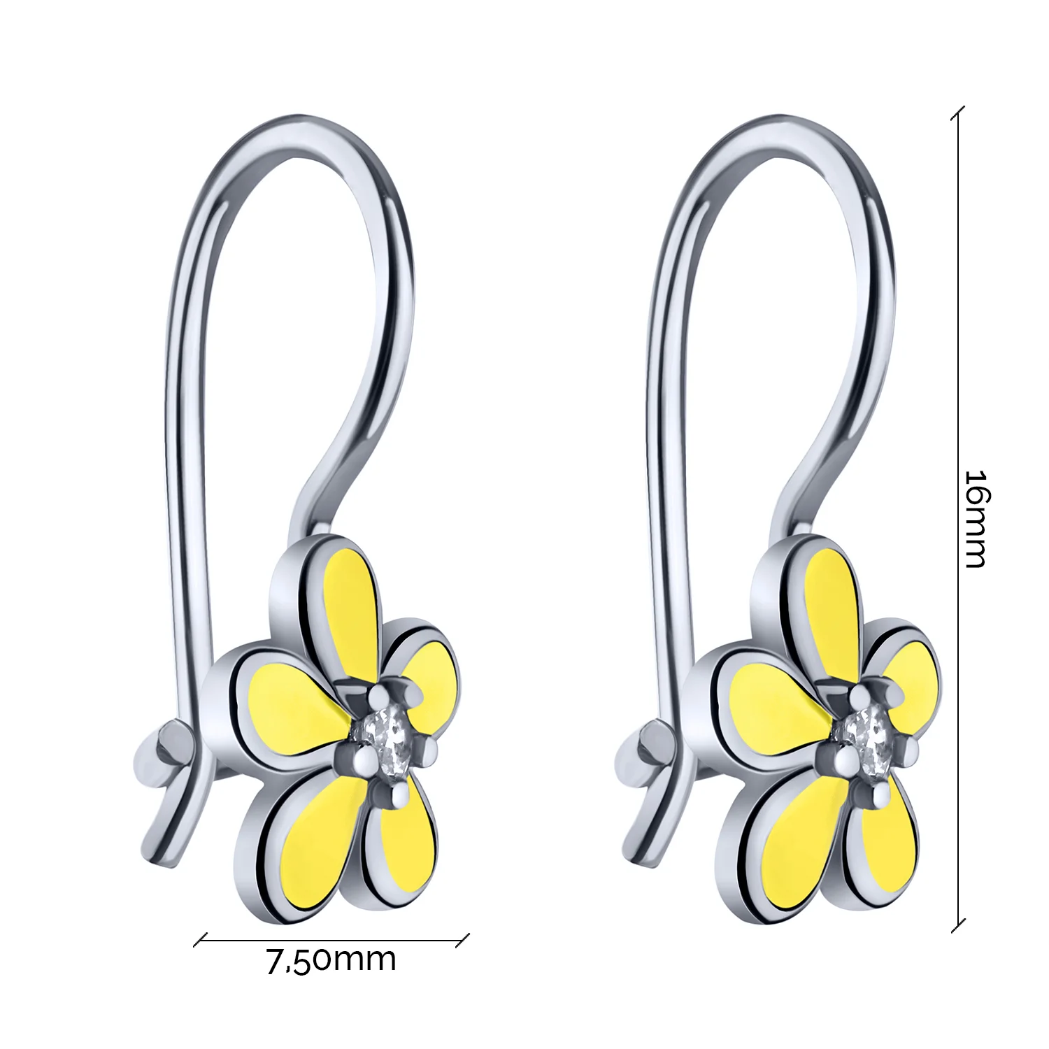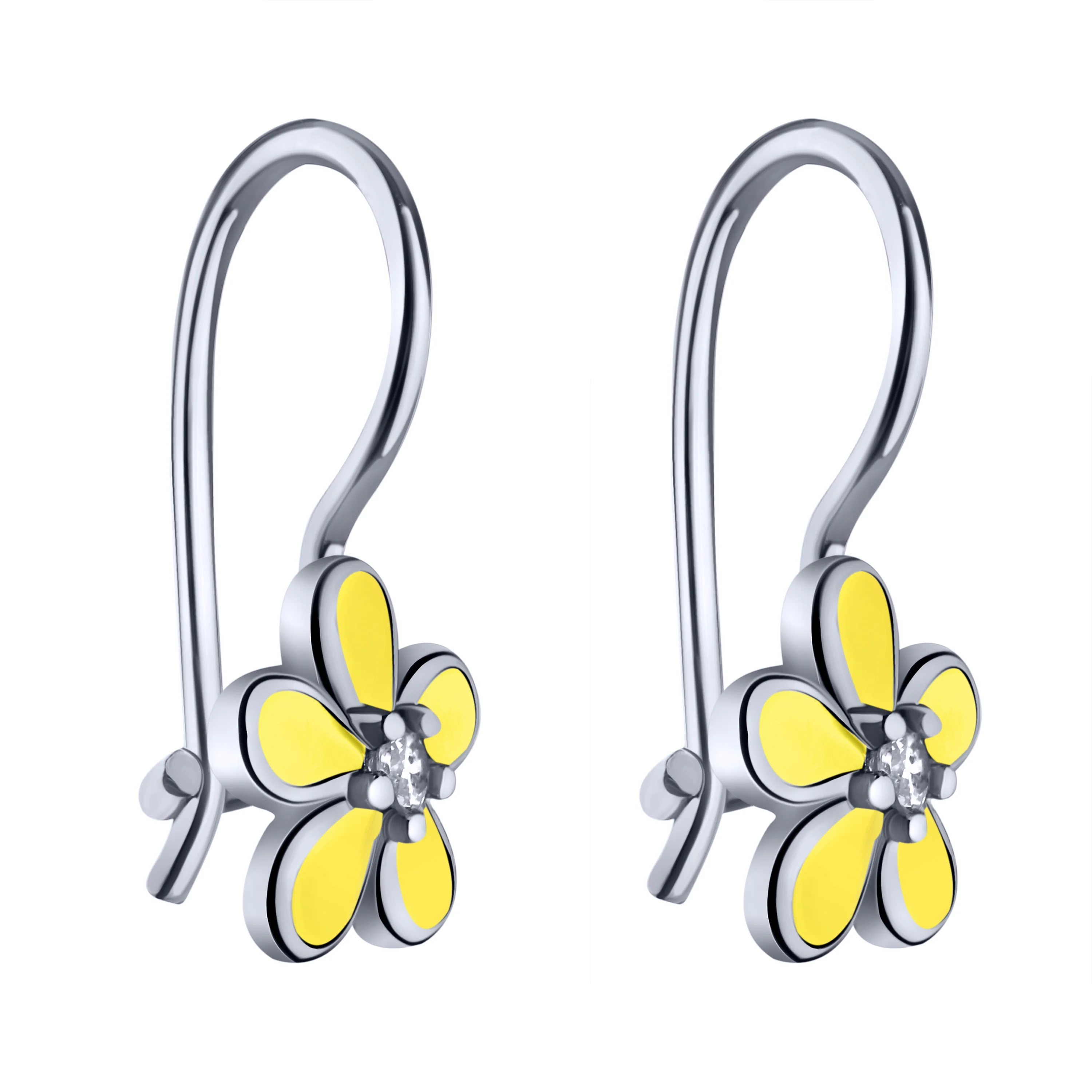 Сережки-петлі дитячі срібні "Квітка" з емаллю та фіанітами - 2007935