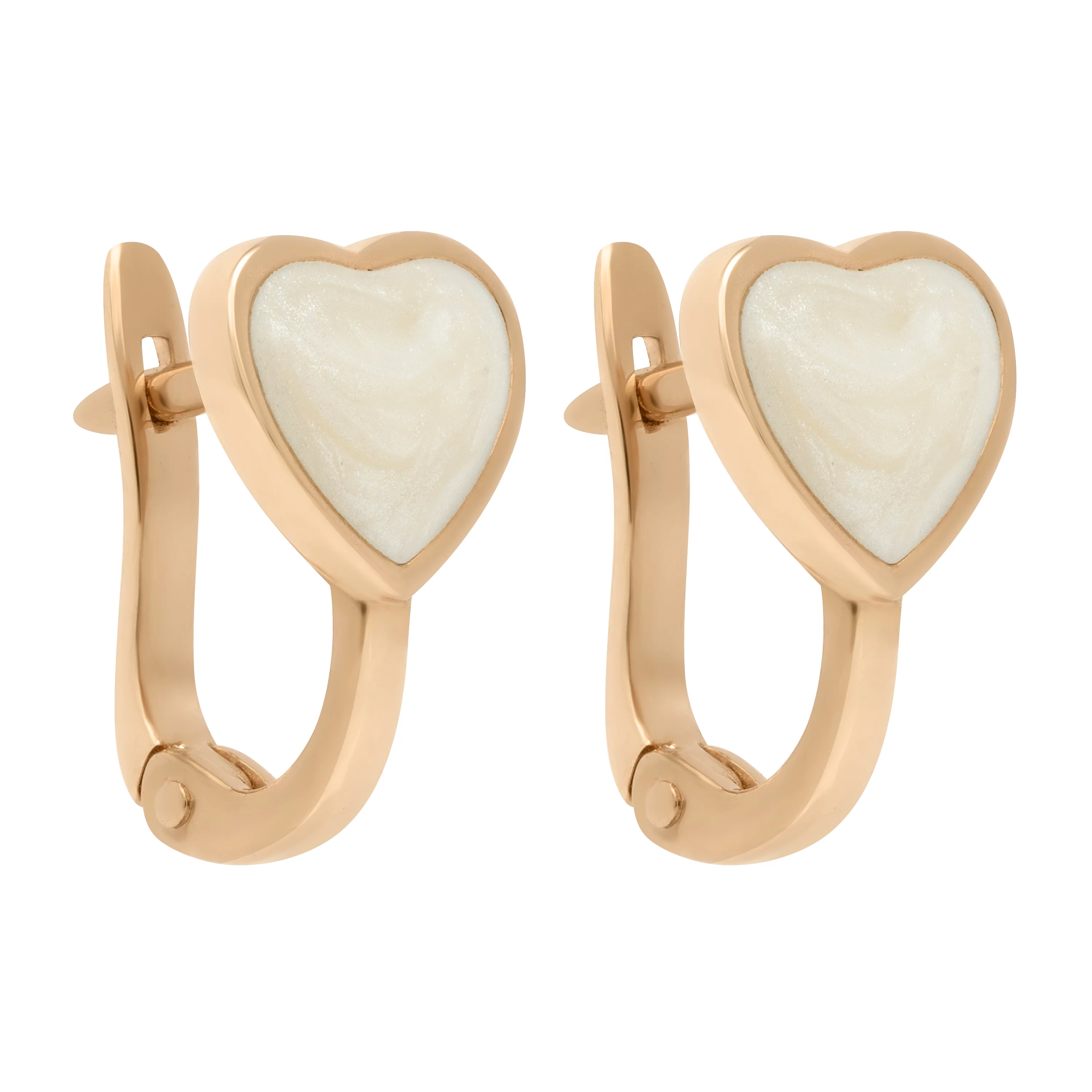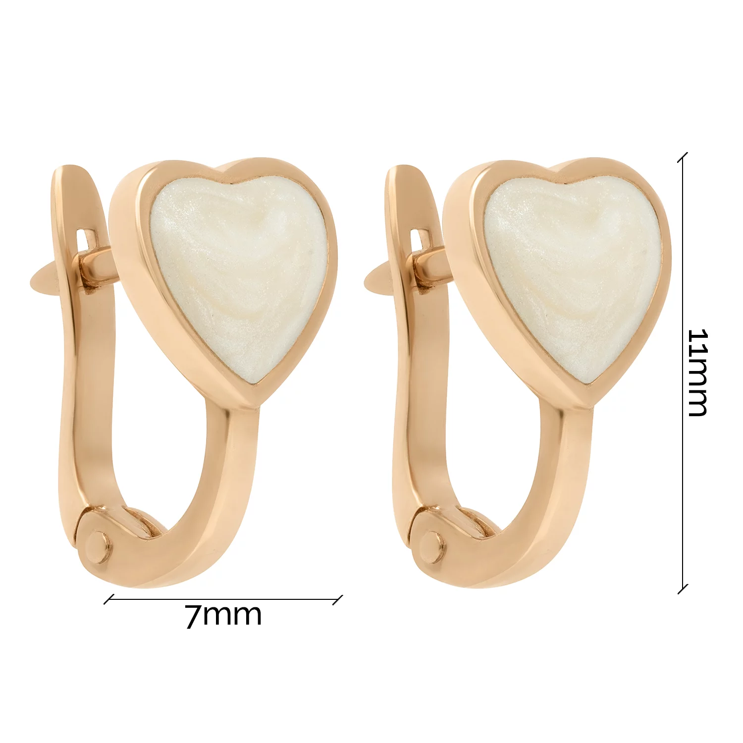 Сережки-гвоздики у мінімалістичному стилі з червоного золота з емаллю - 1924909