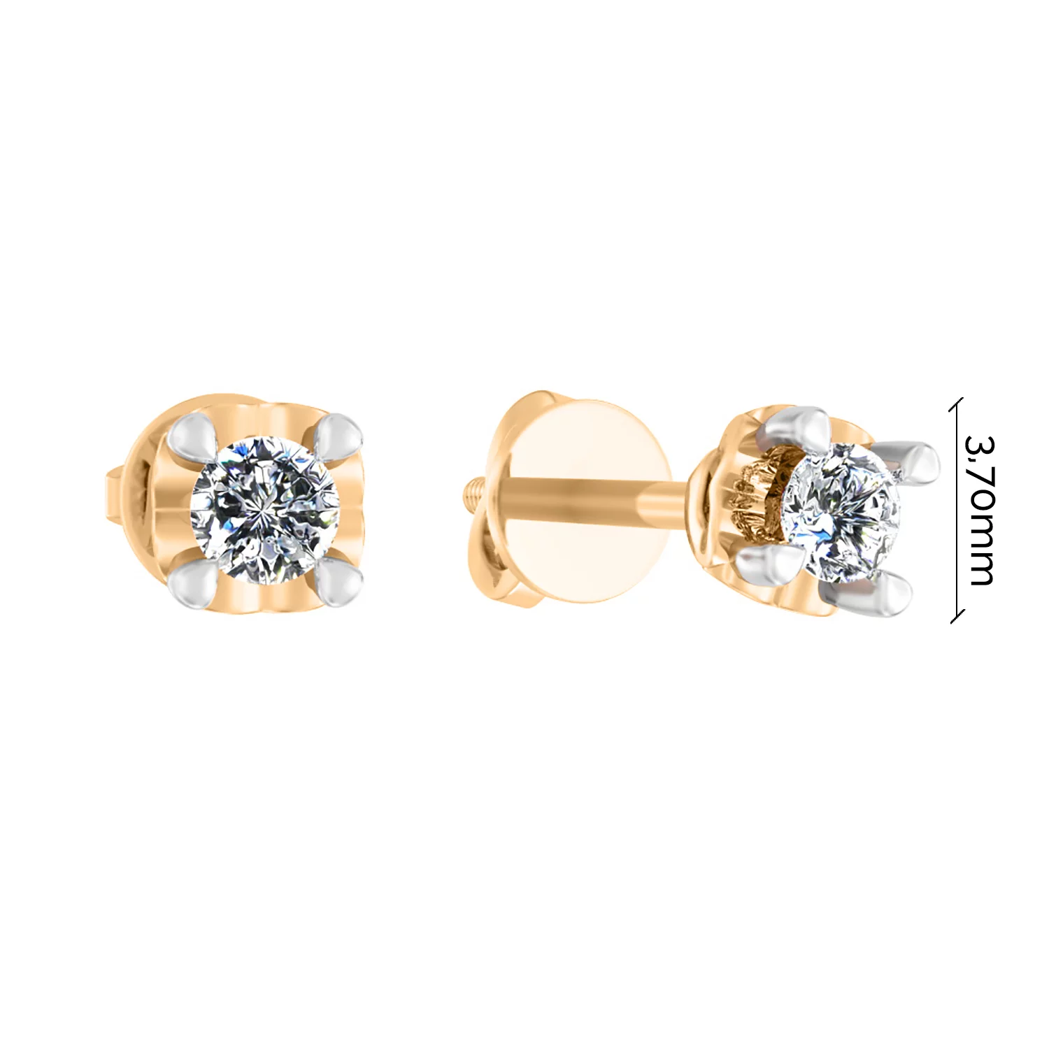 Сережки-гвоздики з діамантом у стилі мінімалізм у червоному золоті - 1801732