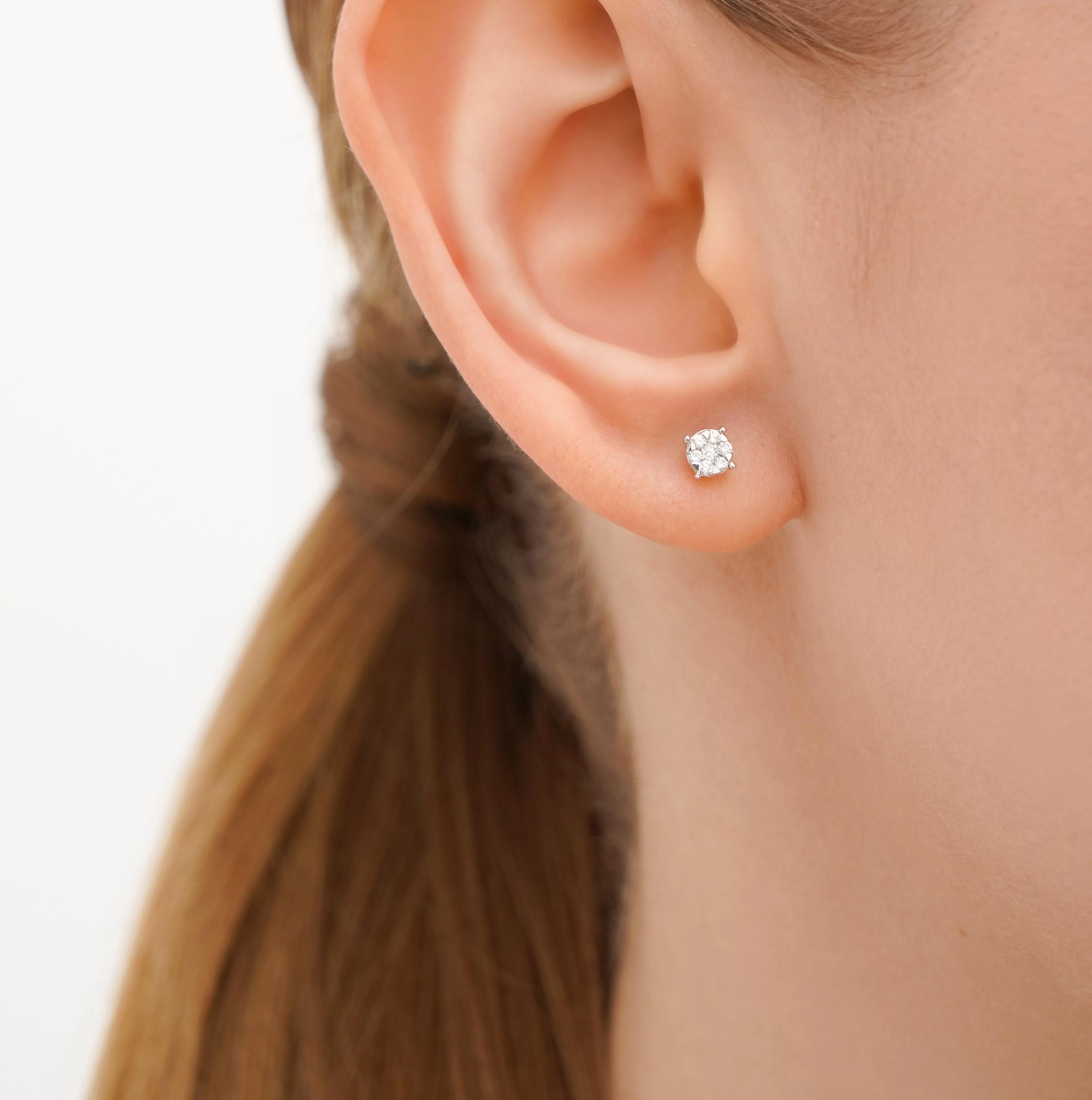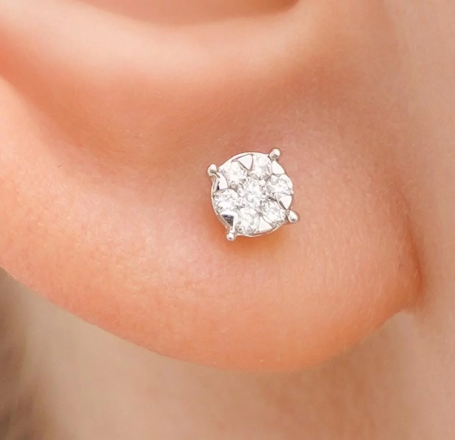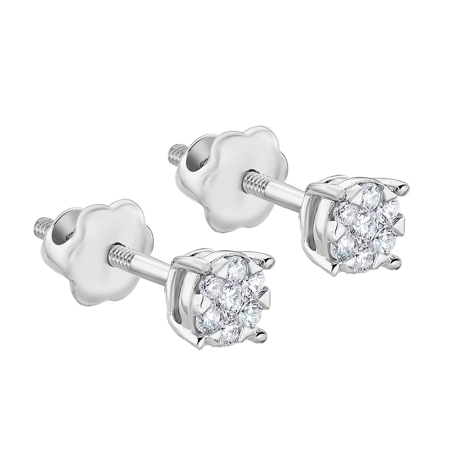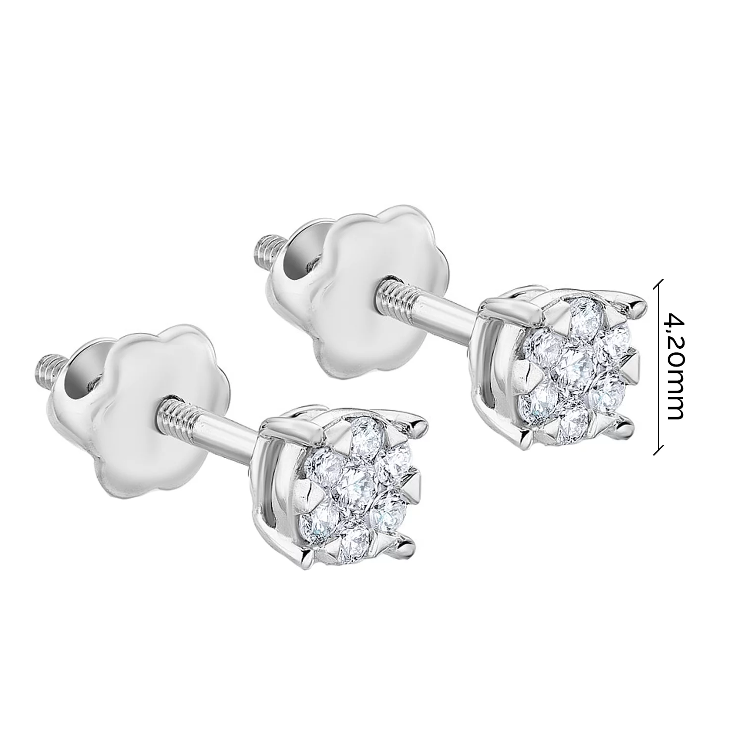 Круглі сережки-гвоздики з розсипом діамантів із білого золота - 1738517