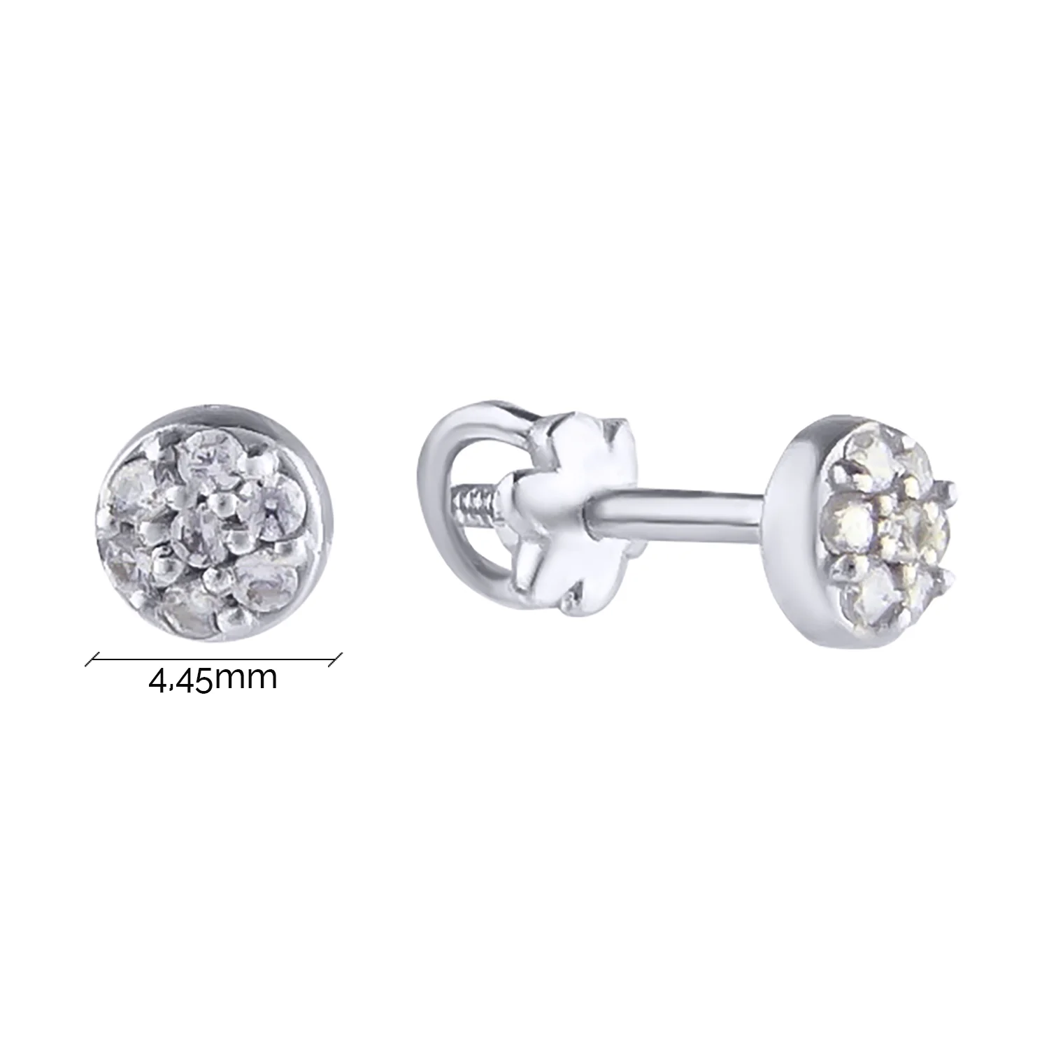Сережки-гвоздики з білого золота з фіанітами - 604129