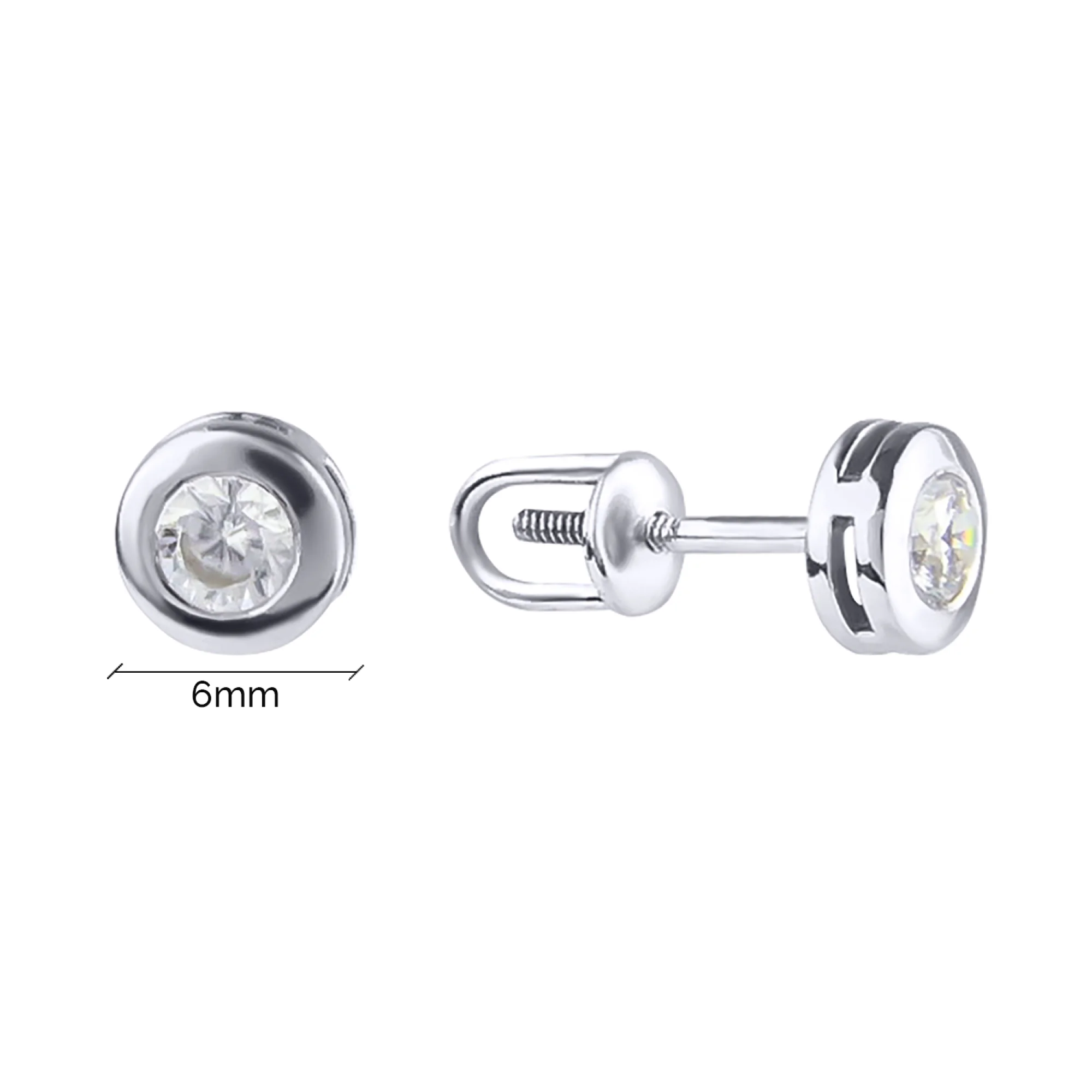 Сережки-гвоздики з білого золота з фіанітами - 637662