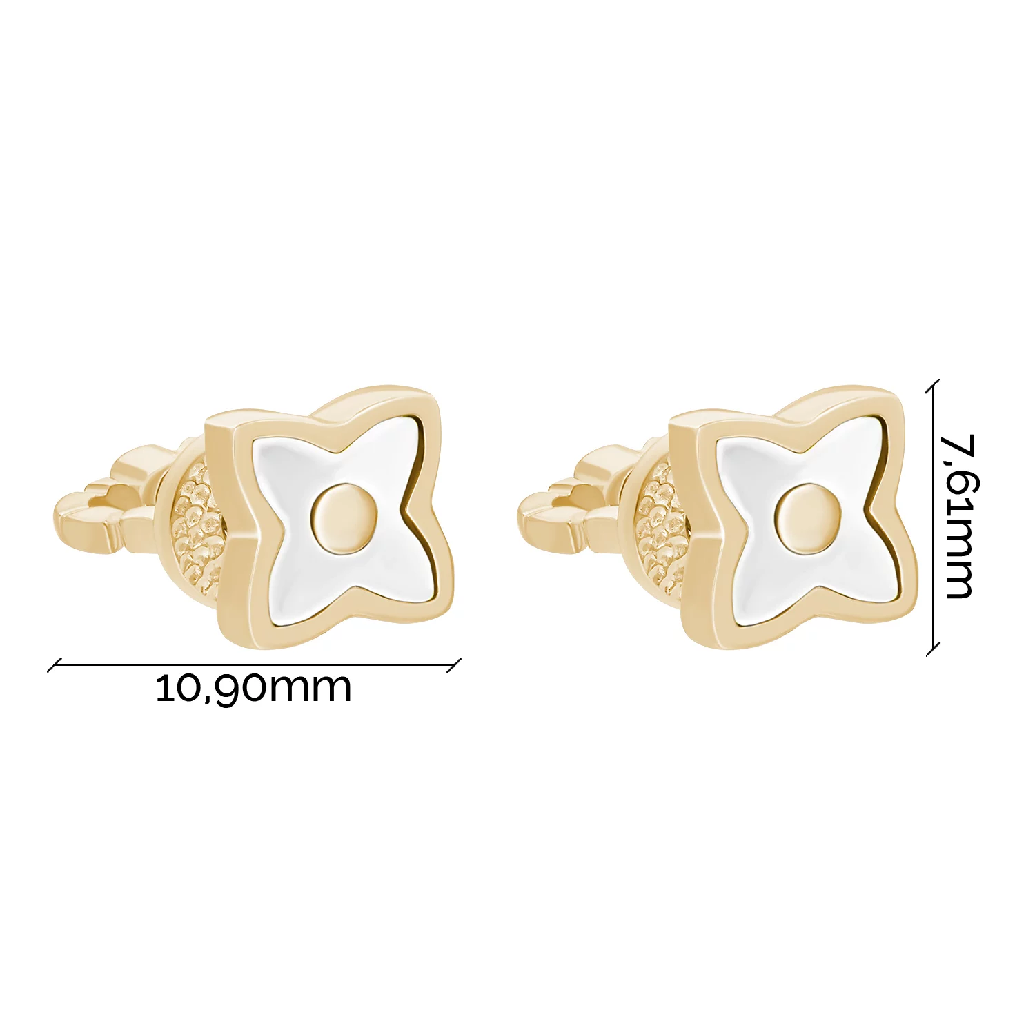 Сережки-гвоздики з червоного золота "Квітка" з емаллю - 1743022