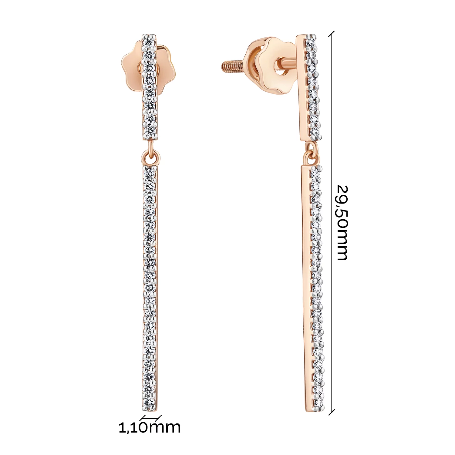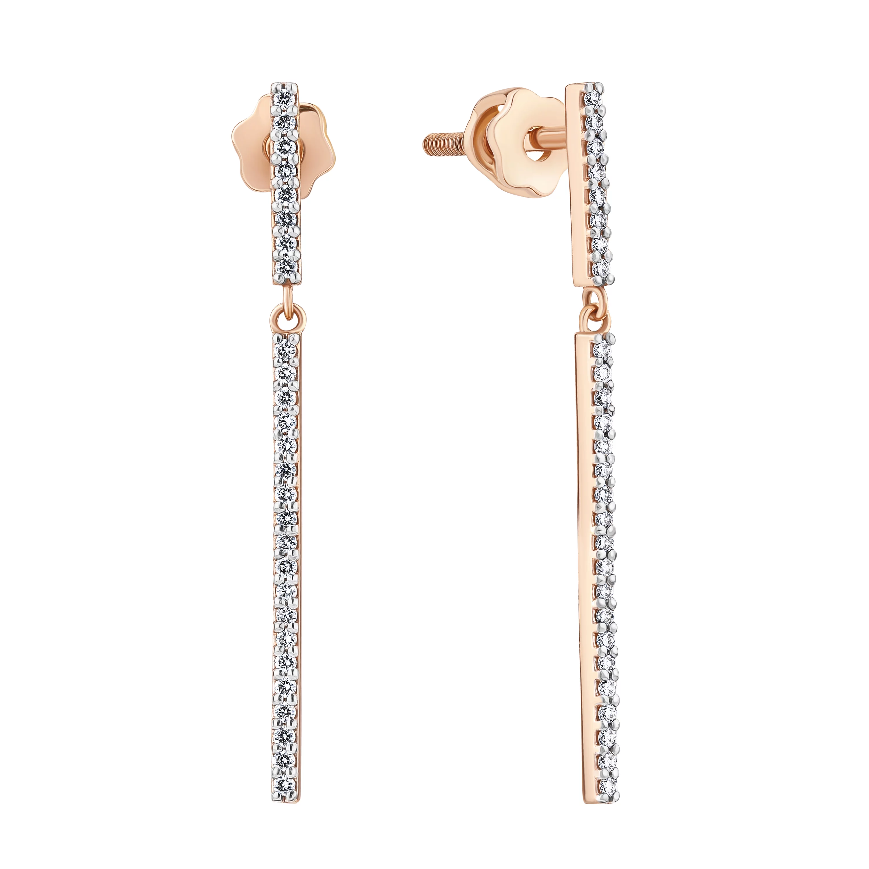 Сережки-гвоздики з червоного золота з діамантами "Прямокутник" - 908338