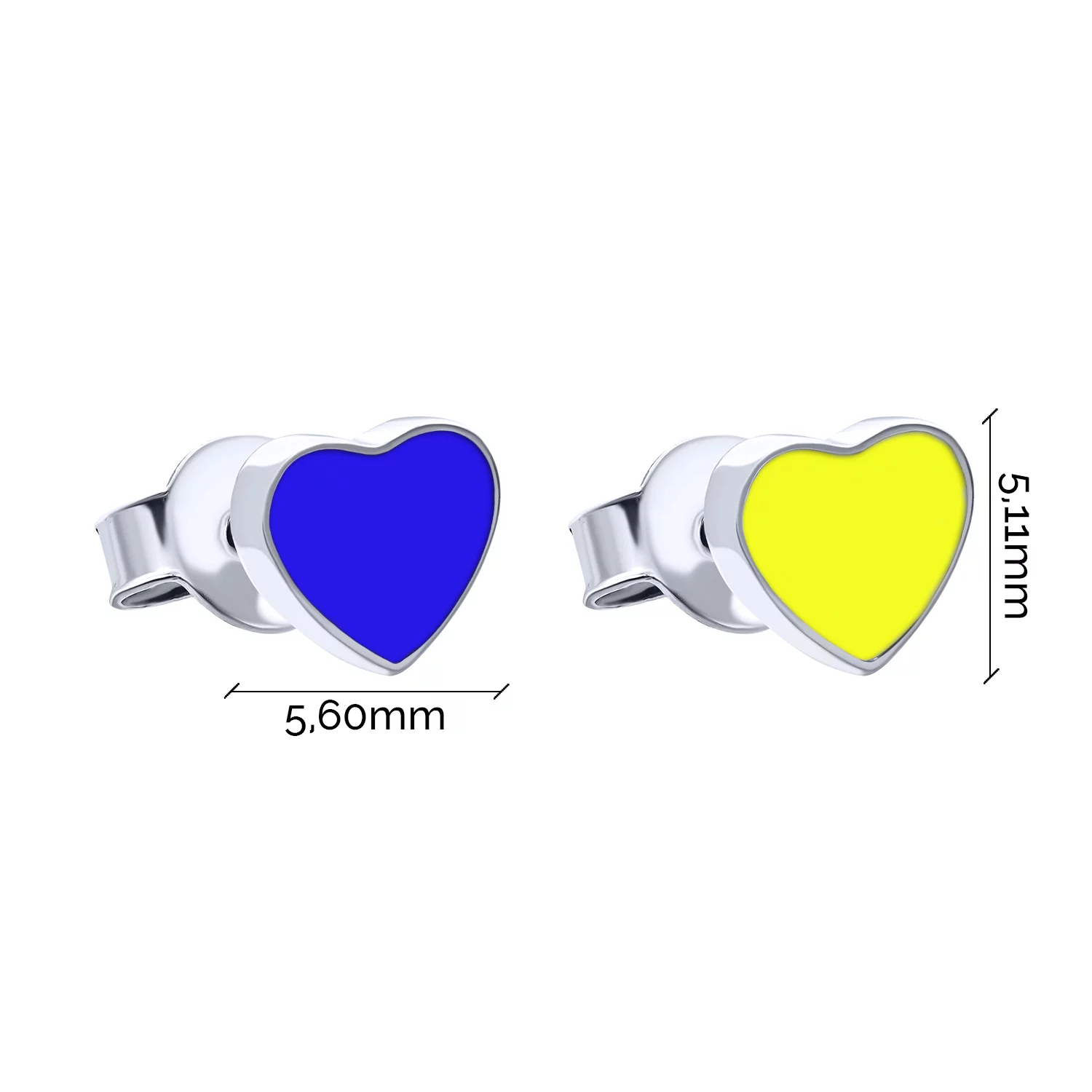 Сережки-гвоздики зі срібла з емаллю "Українське Серце" - 1553043