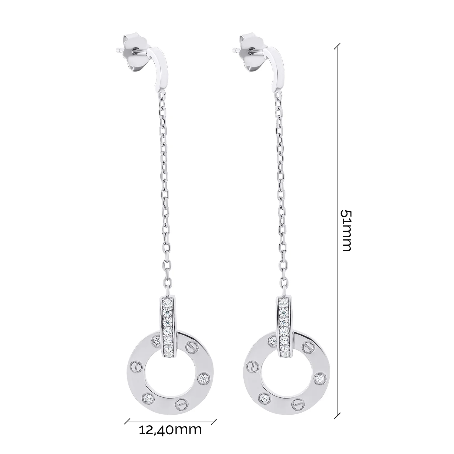 Сережки-гвоздики трансформери срібні з підвісками "Геометрія" та емаллю - 1548699