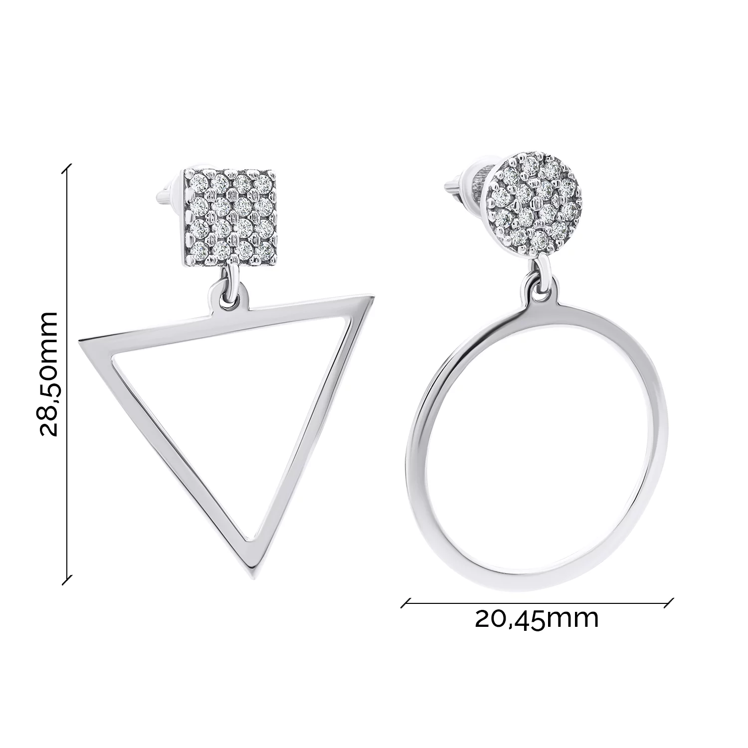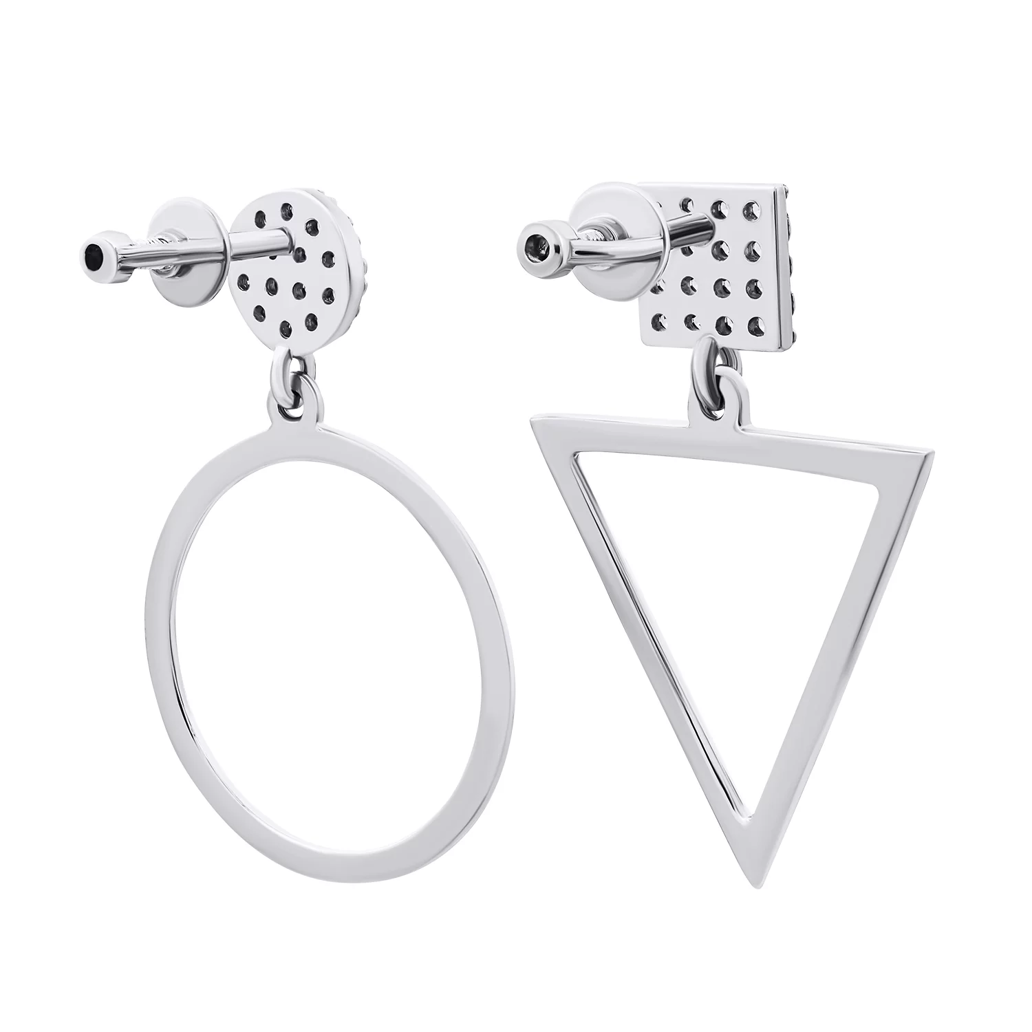 Сережки-гвоздики трансформери срібні з підвісками "Геометрія" та емаллю - 1548699