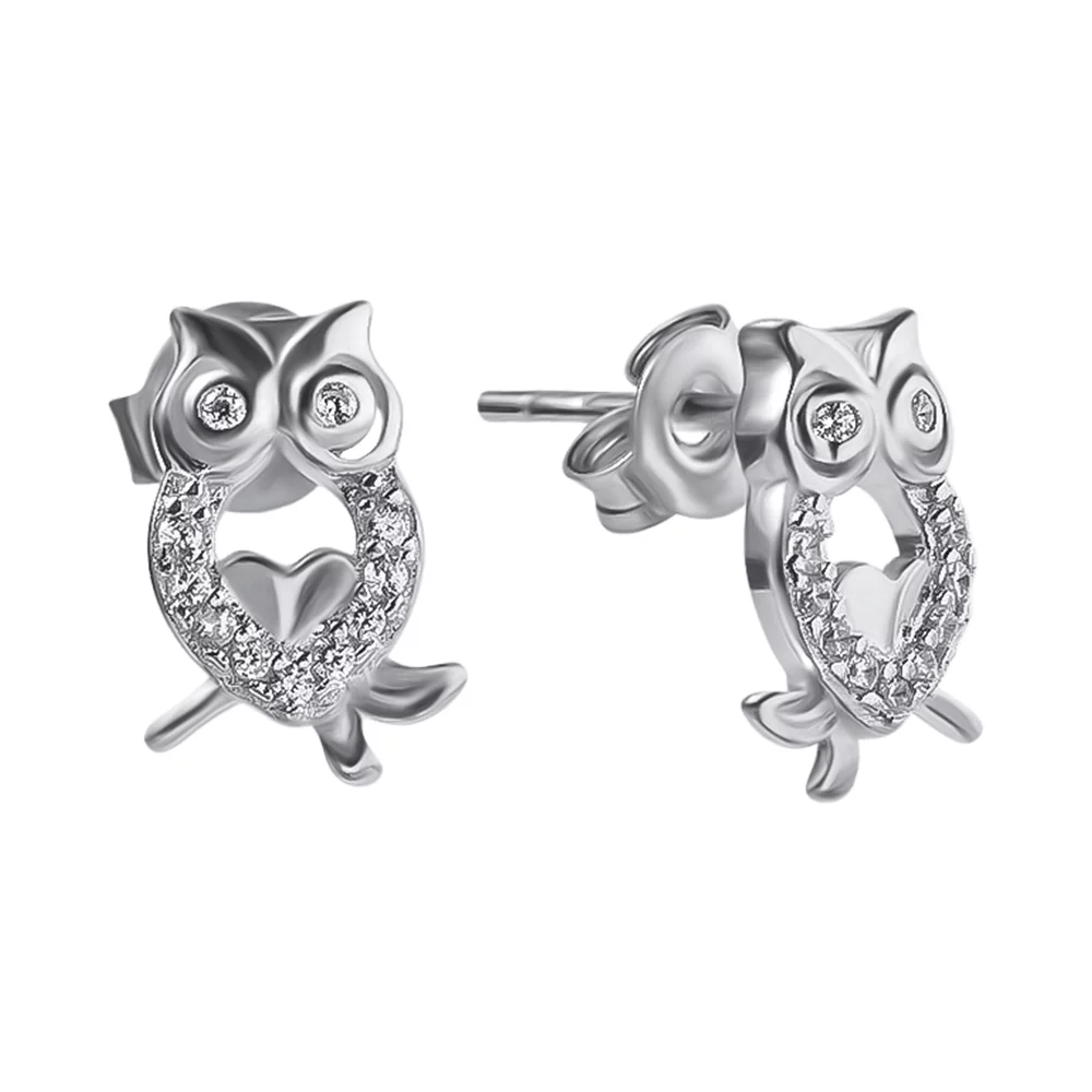 Сережки-гвоздики зі срібла Сова з фіанітами - 1508056