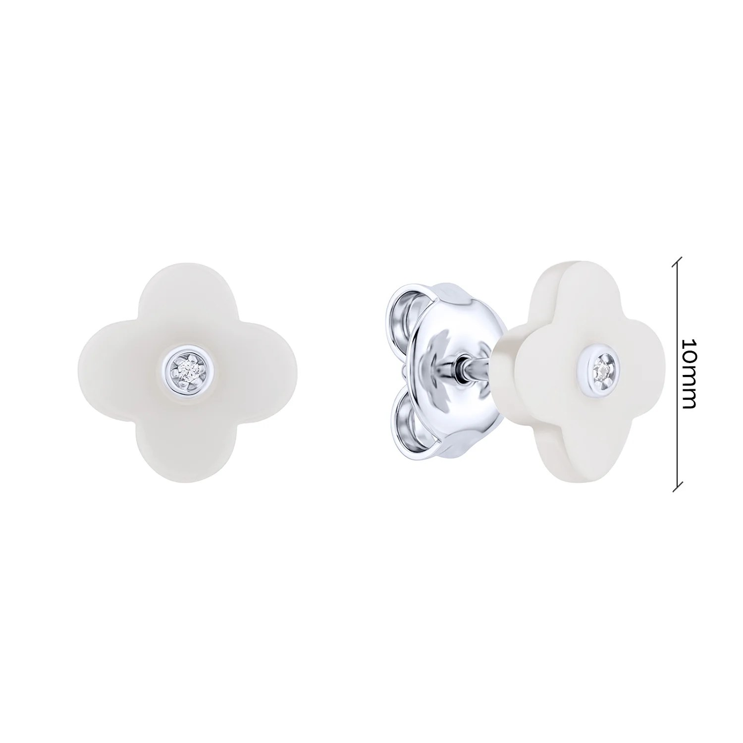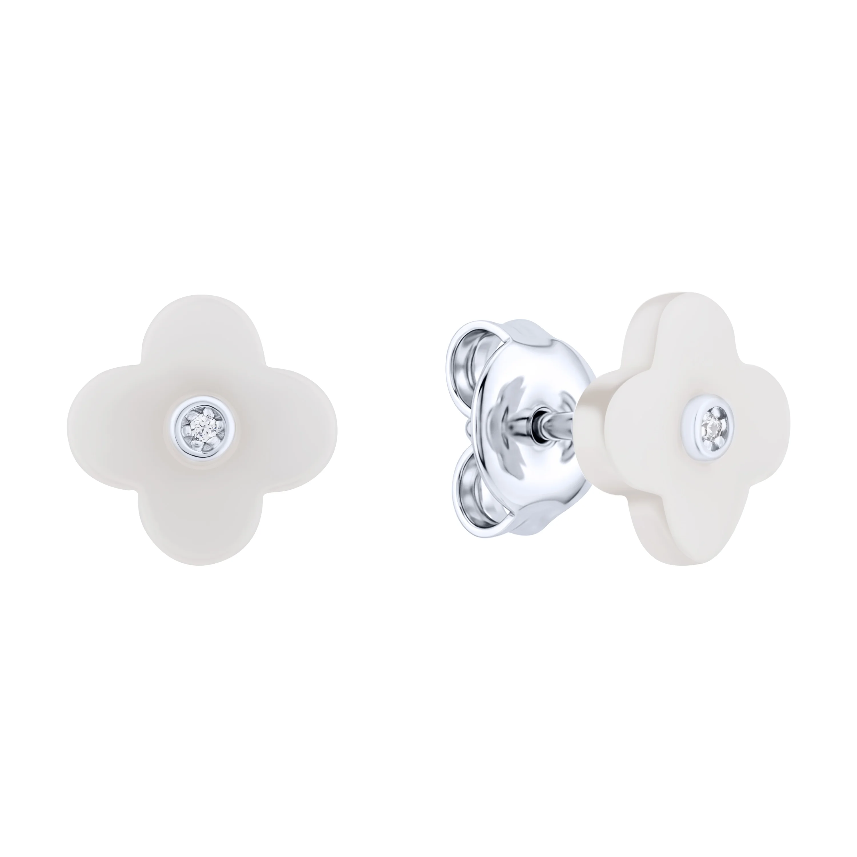 Сережки-пусети зі срібла "Квітка" з фіанітом і керамікою - 2211136