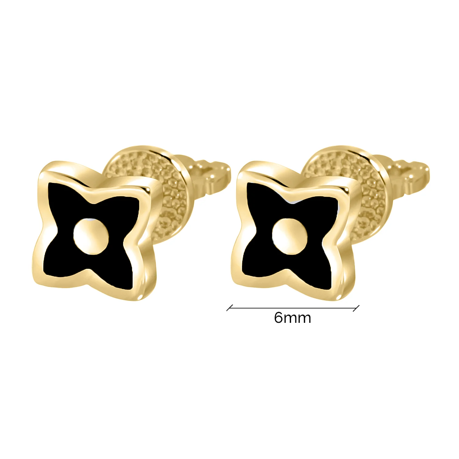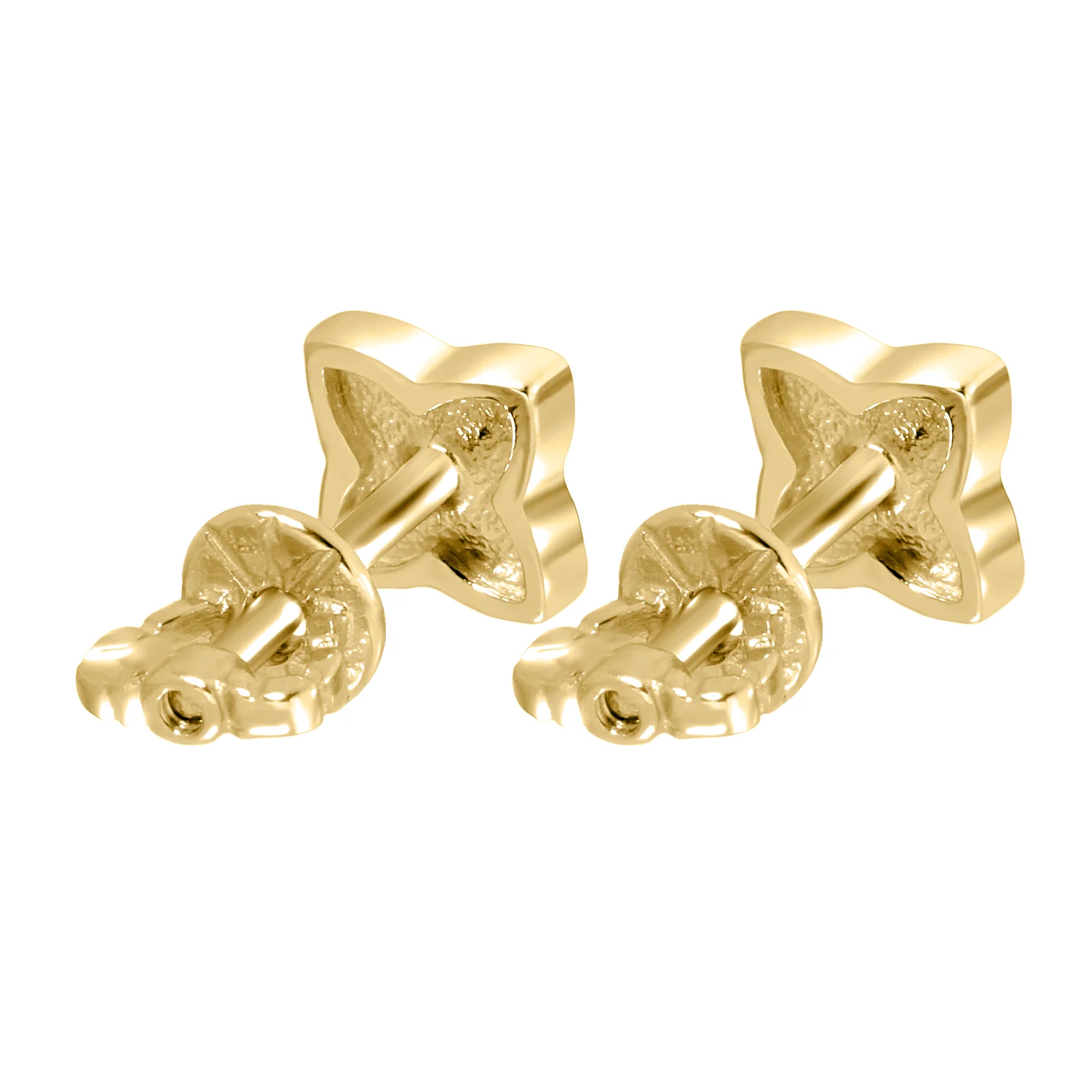 Сережки-гвоздики "Квадрат" у червоному золоті з емаллю та фіанітами - 1958569