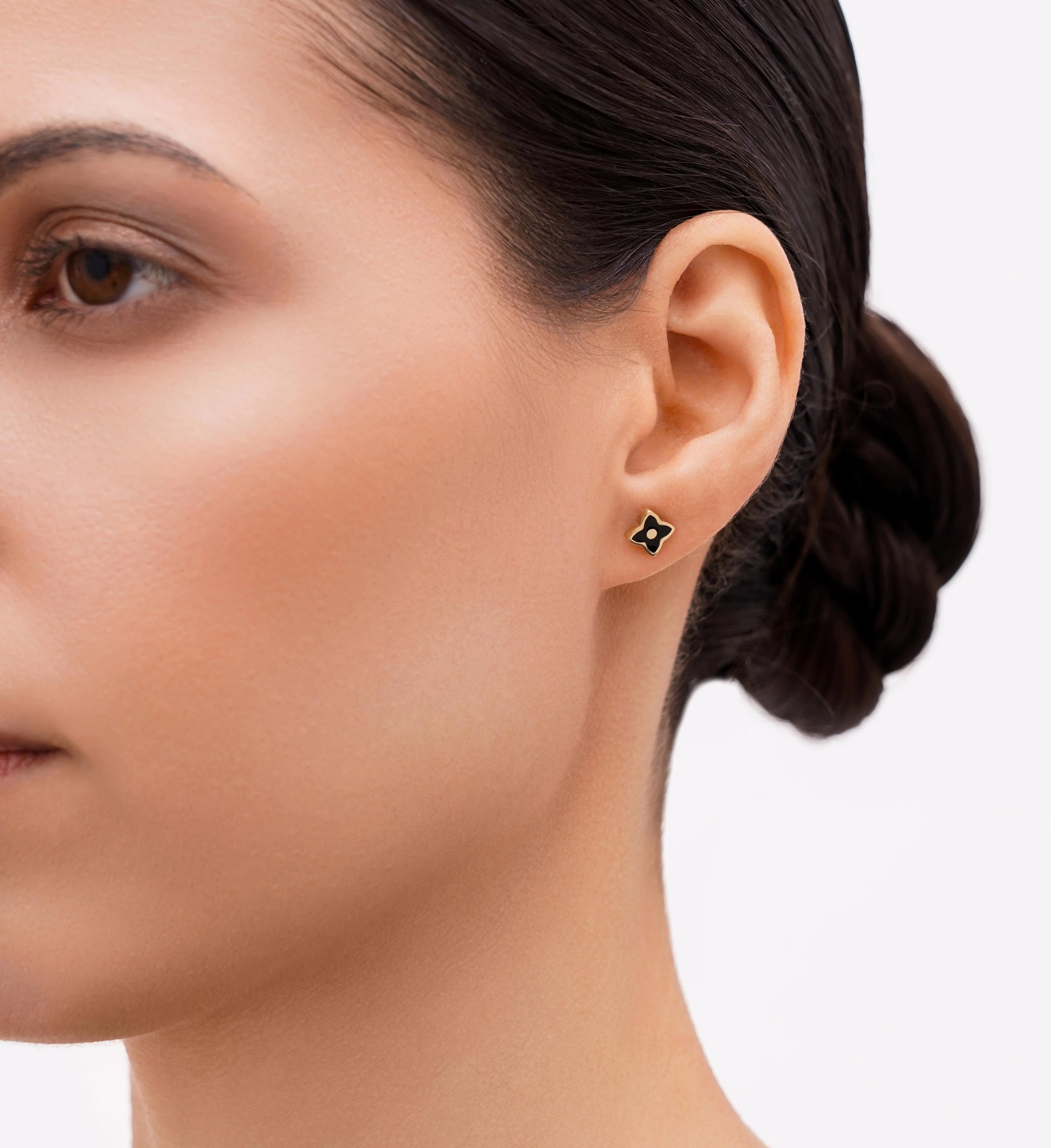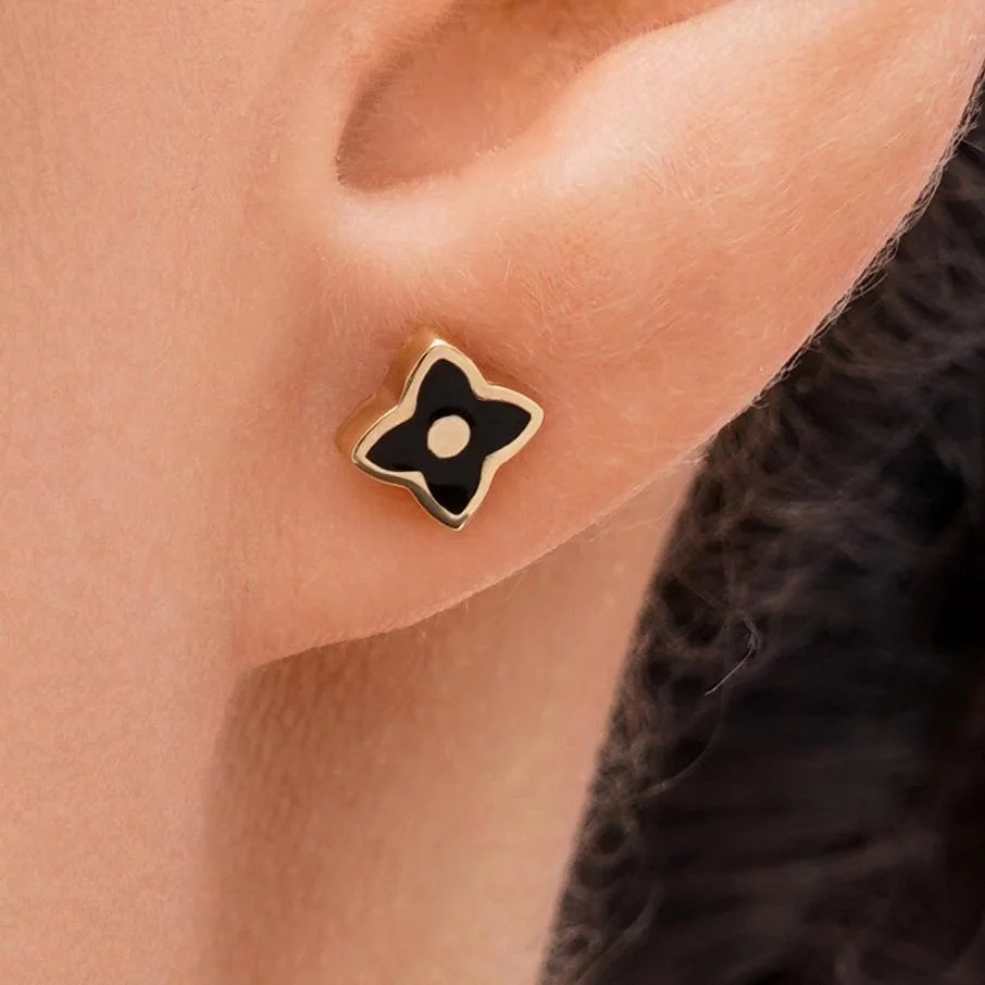 Екстравагантні сережки-гвоздики "Флора" у червоному золоті з емаллю - 1927147