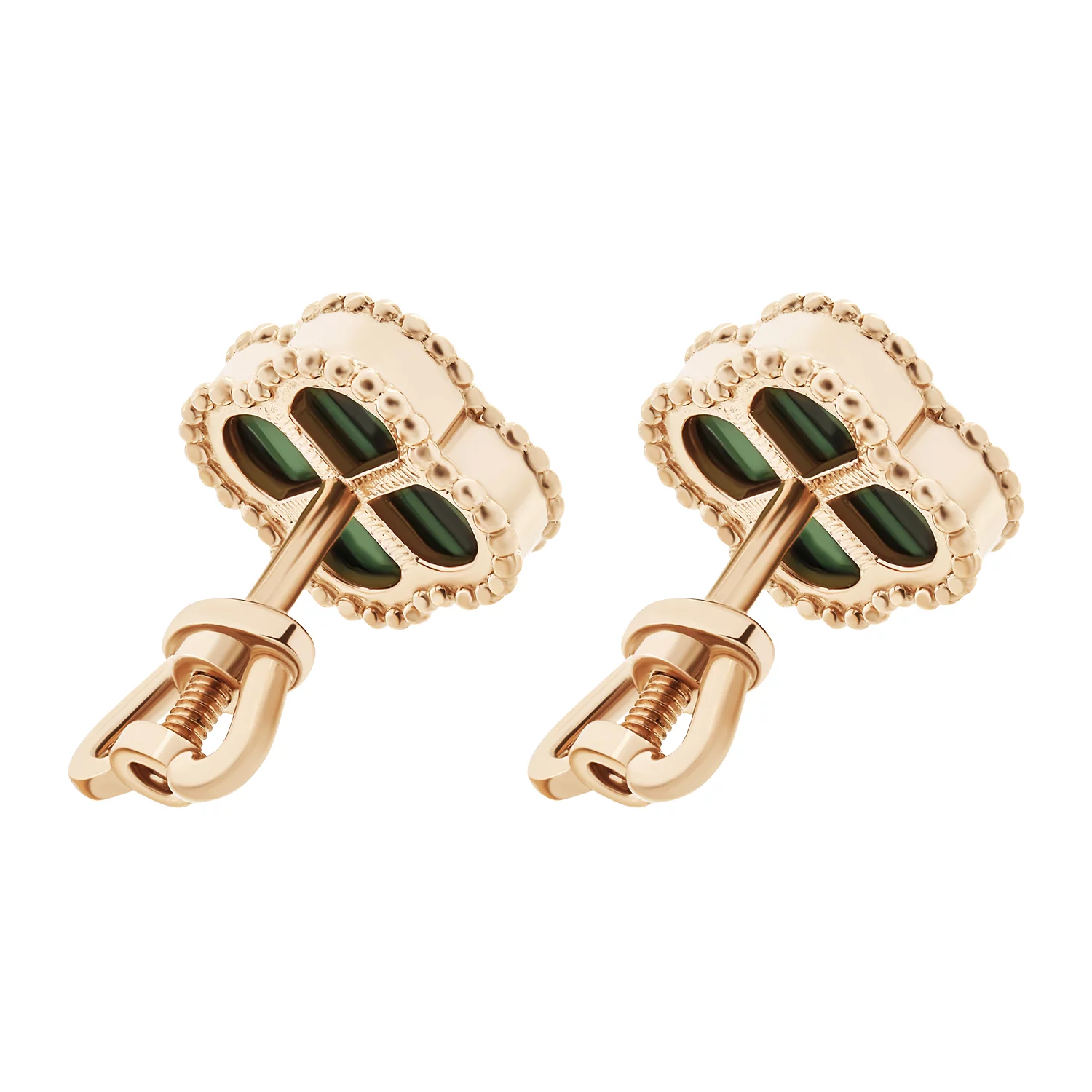 Сережки-гвоздики з червоного золота з перламутром "Конюшина" - 1806360