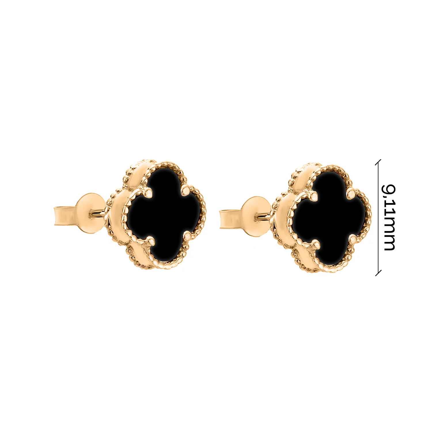 Стильні сережки-гвоздики "Конюшина" з червоного золота з оніксом - 1878296