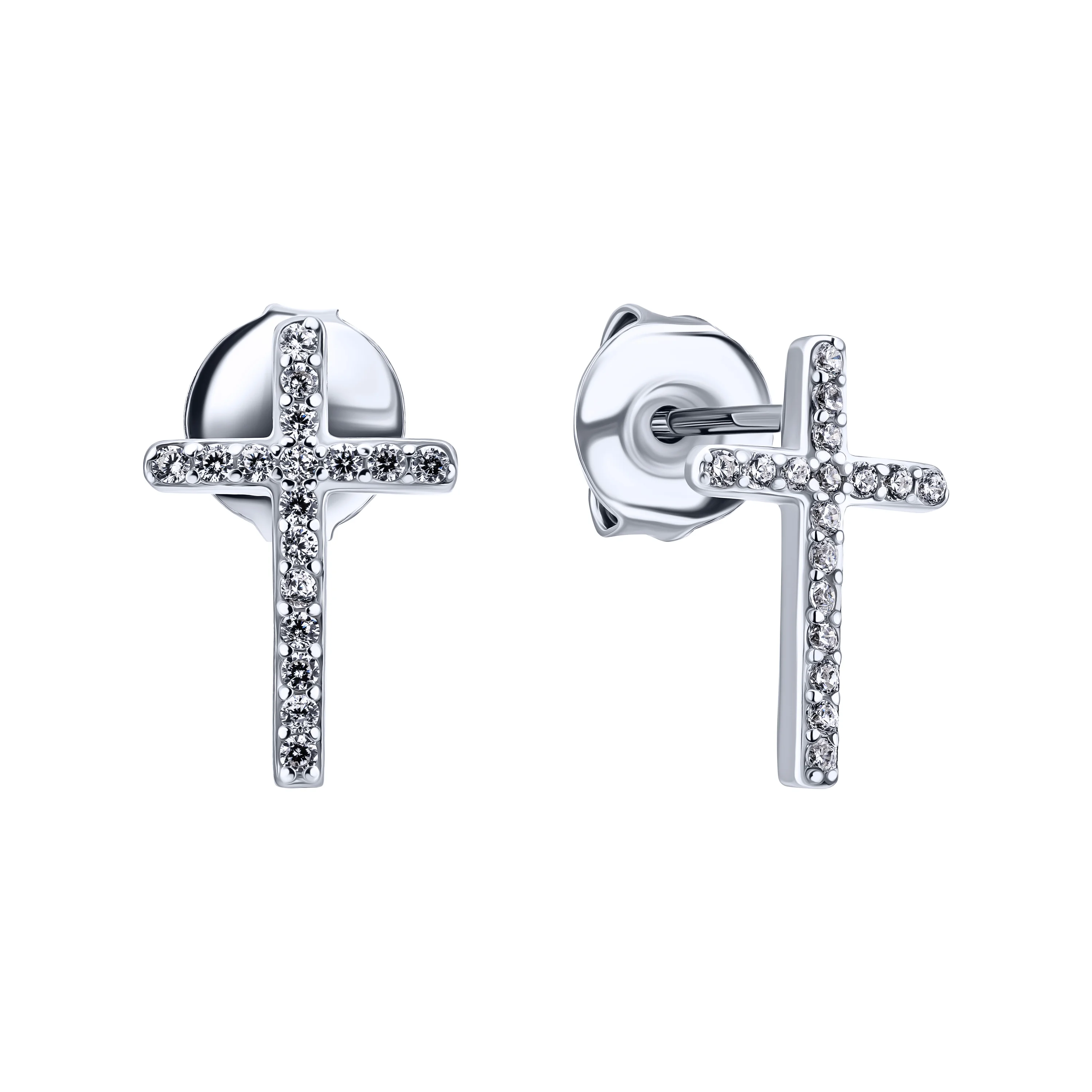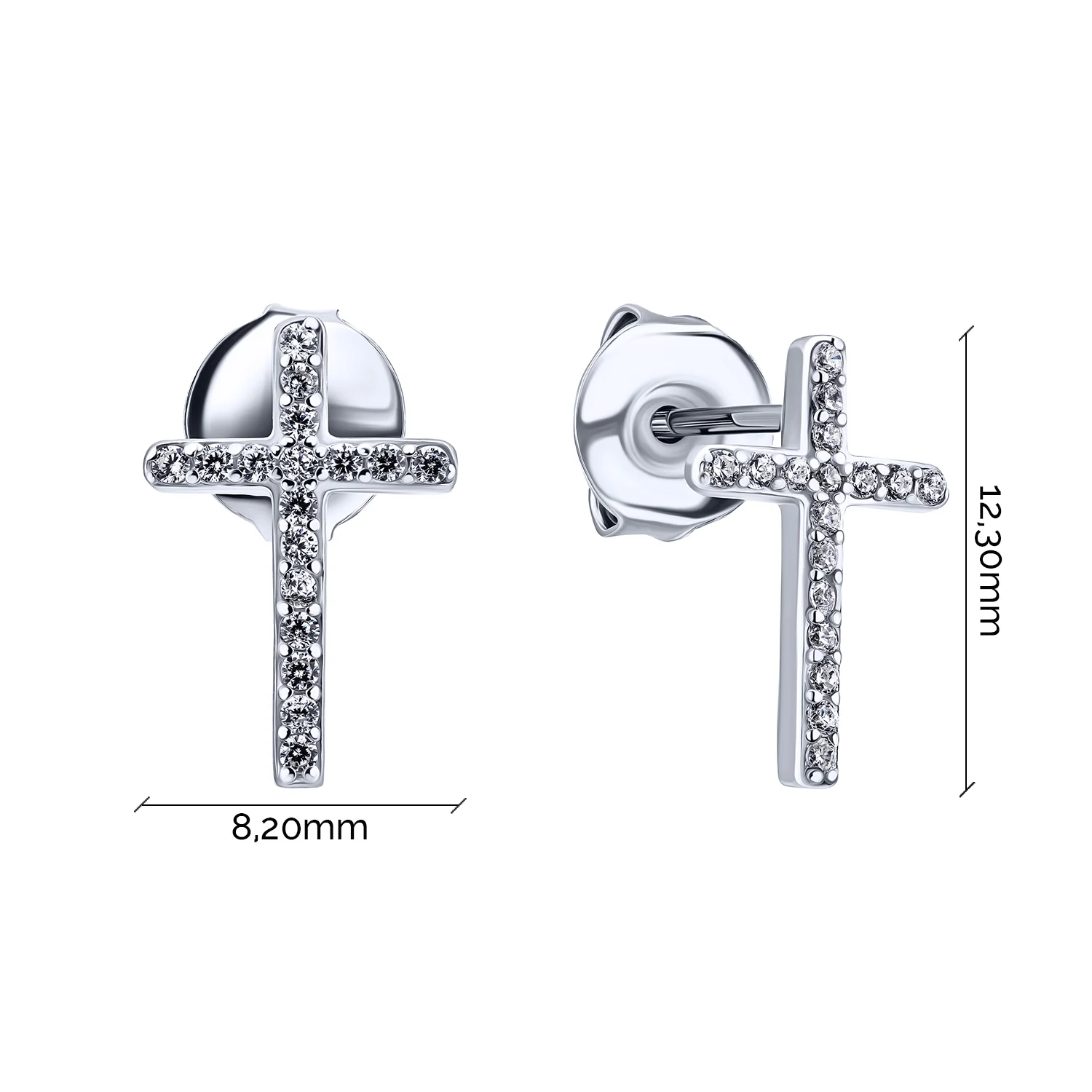 Сережки-пусети "Хрестик" зі срібла з фіанітами - 2100129