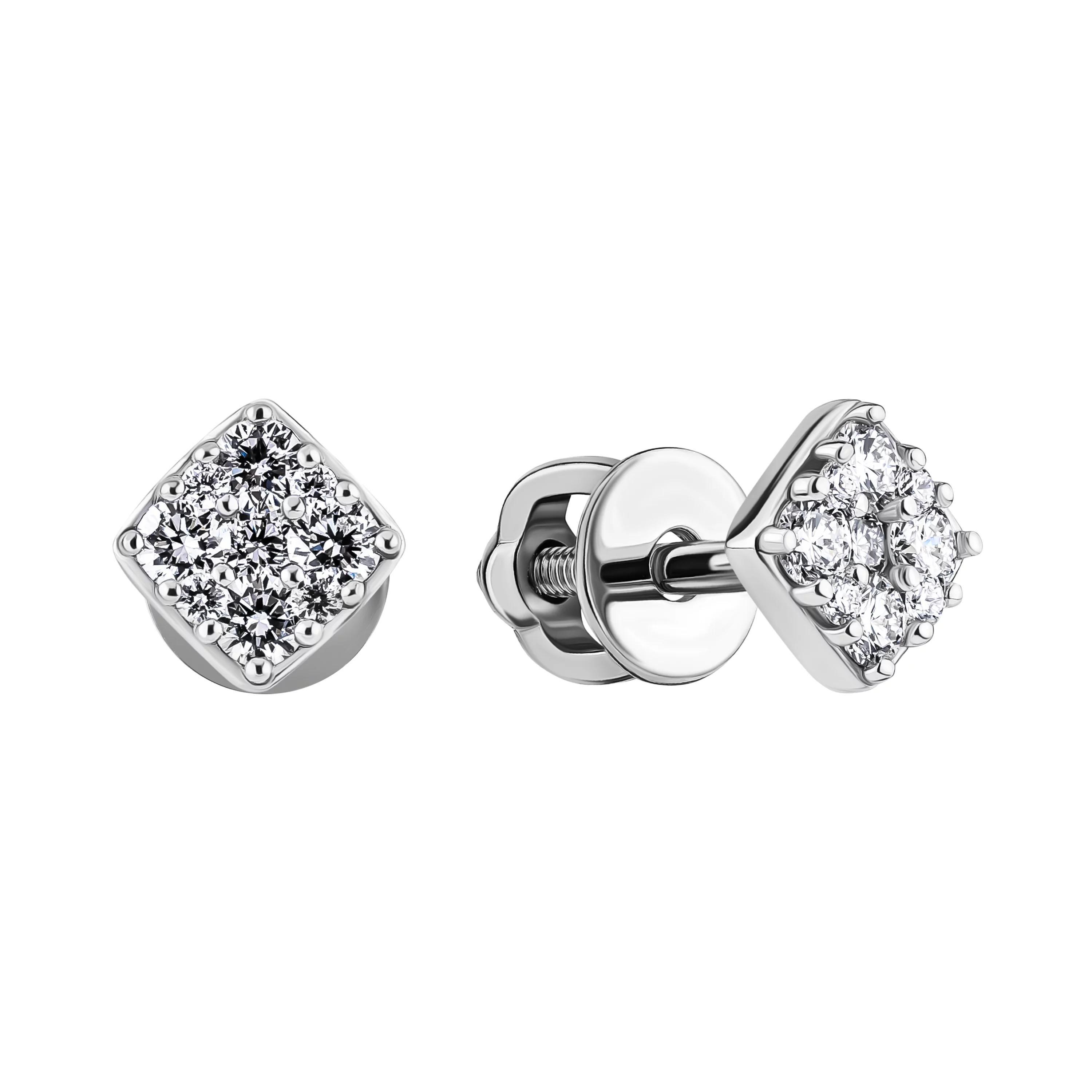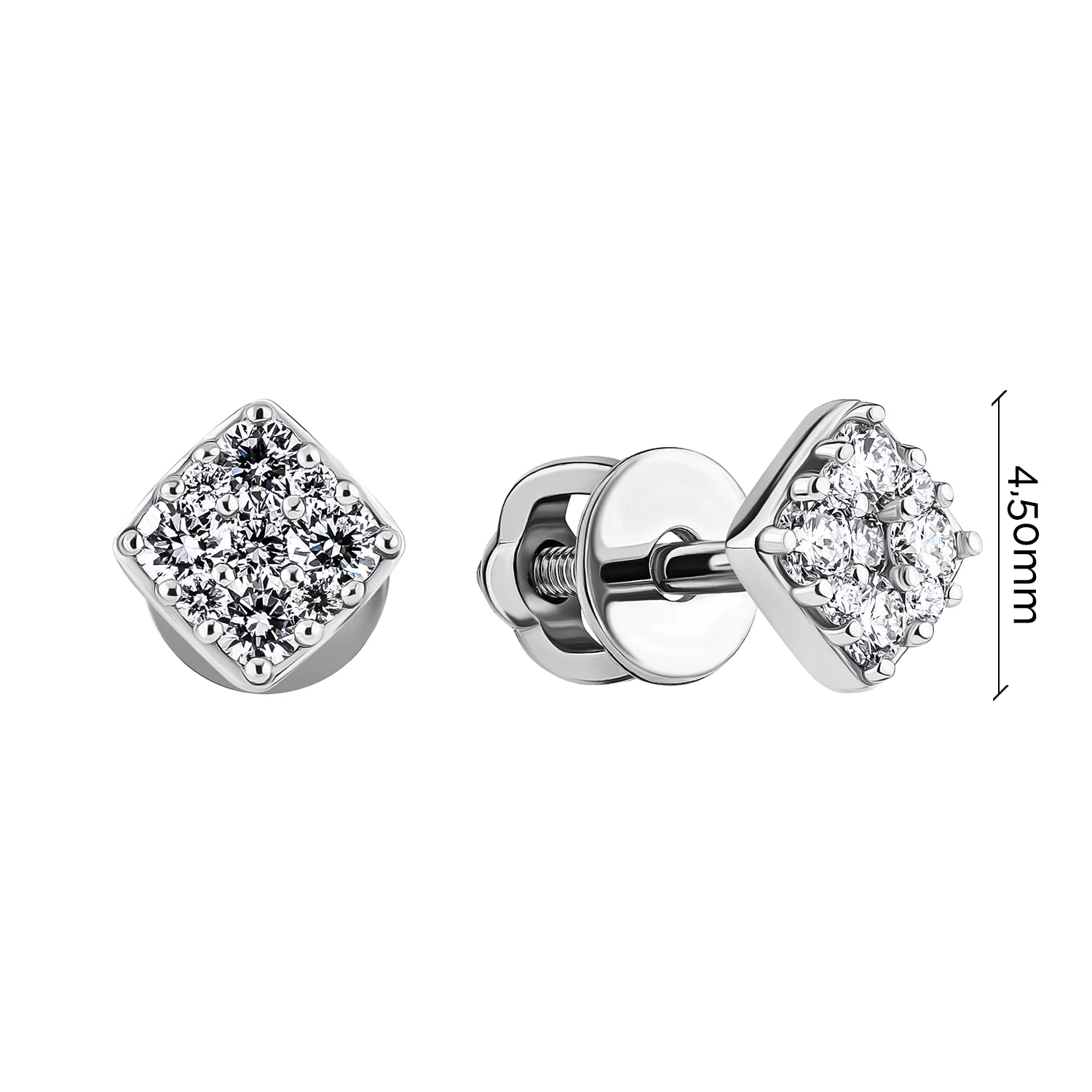 Екстравагантні сережки у формі квадрата з білого золота з діамантами - 1876575