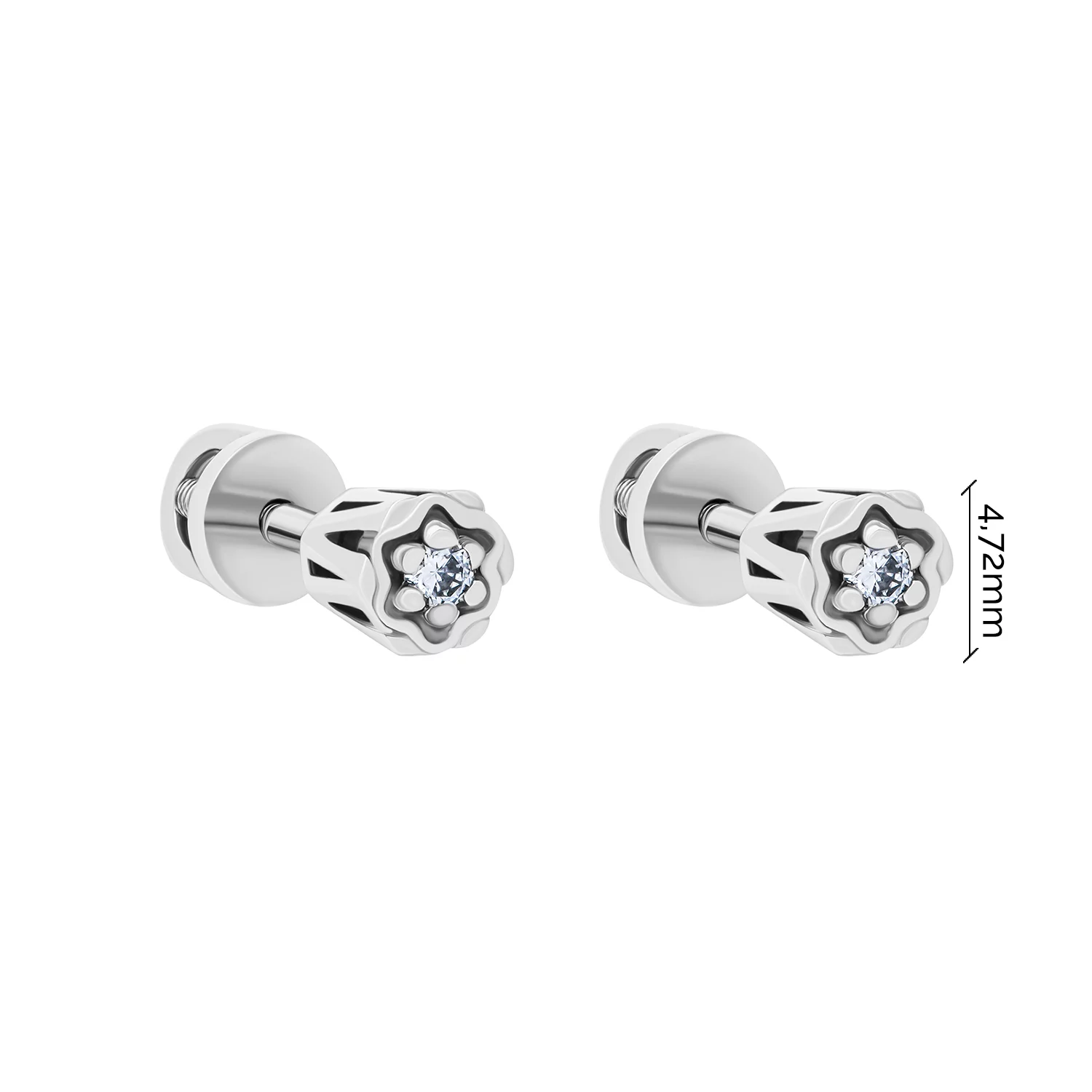Сережки-гвоздики з діамантом у стилі мінімалізм у білому золоті - 1801730