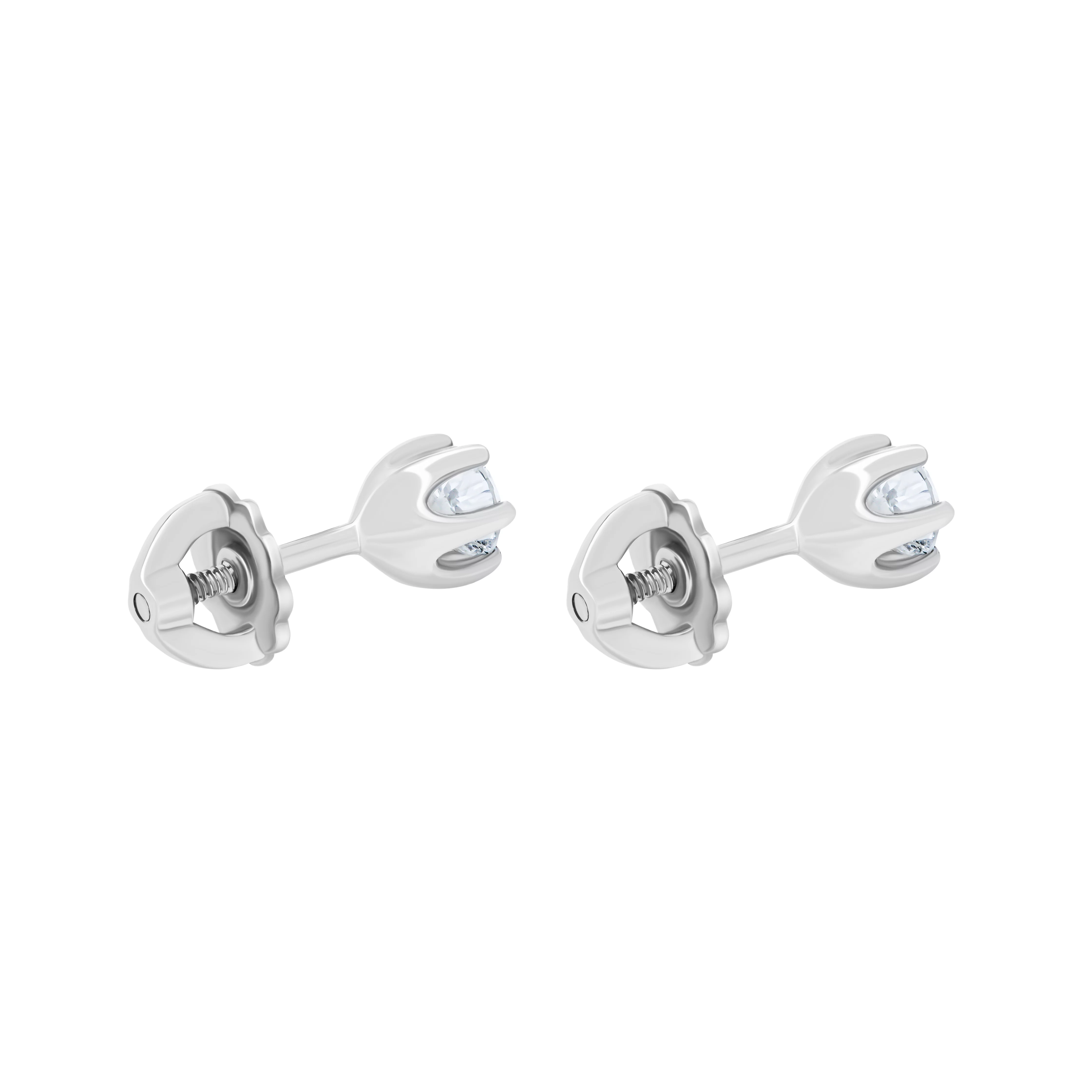Сережки-гвоздики з діамантом у стилі мінімалізм у білому золоті - 1801730