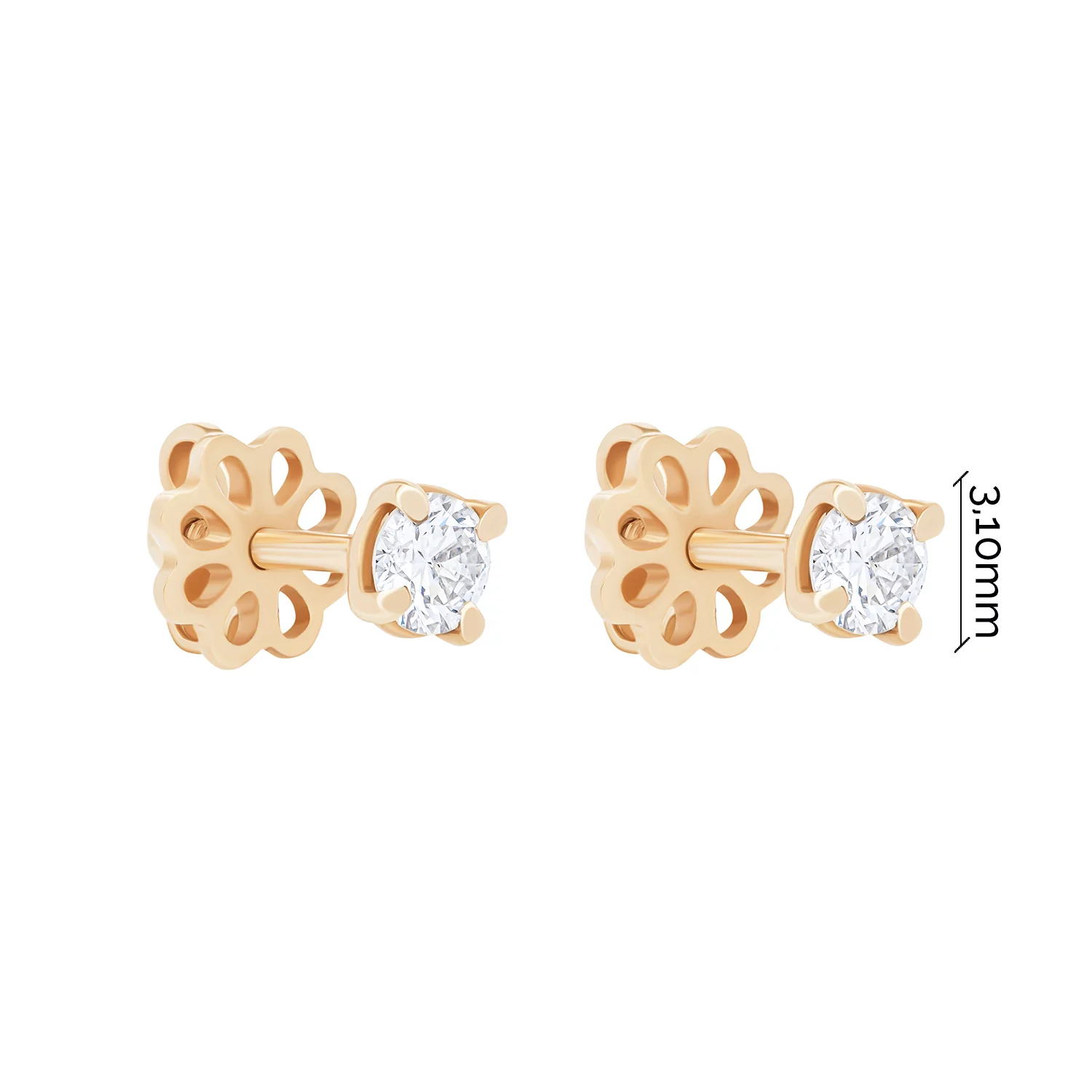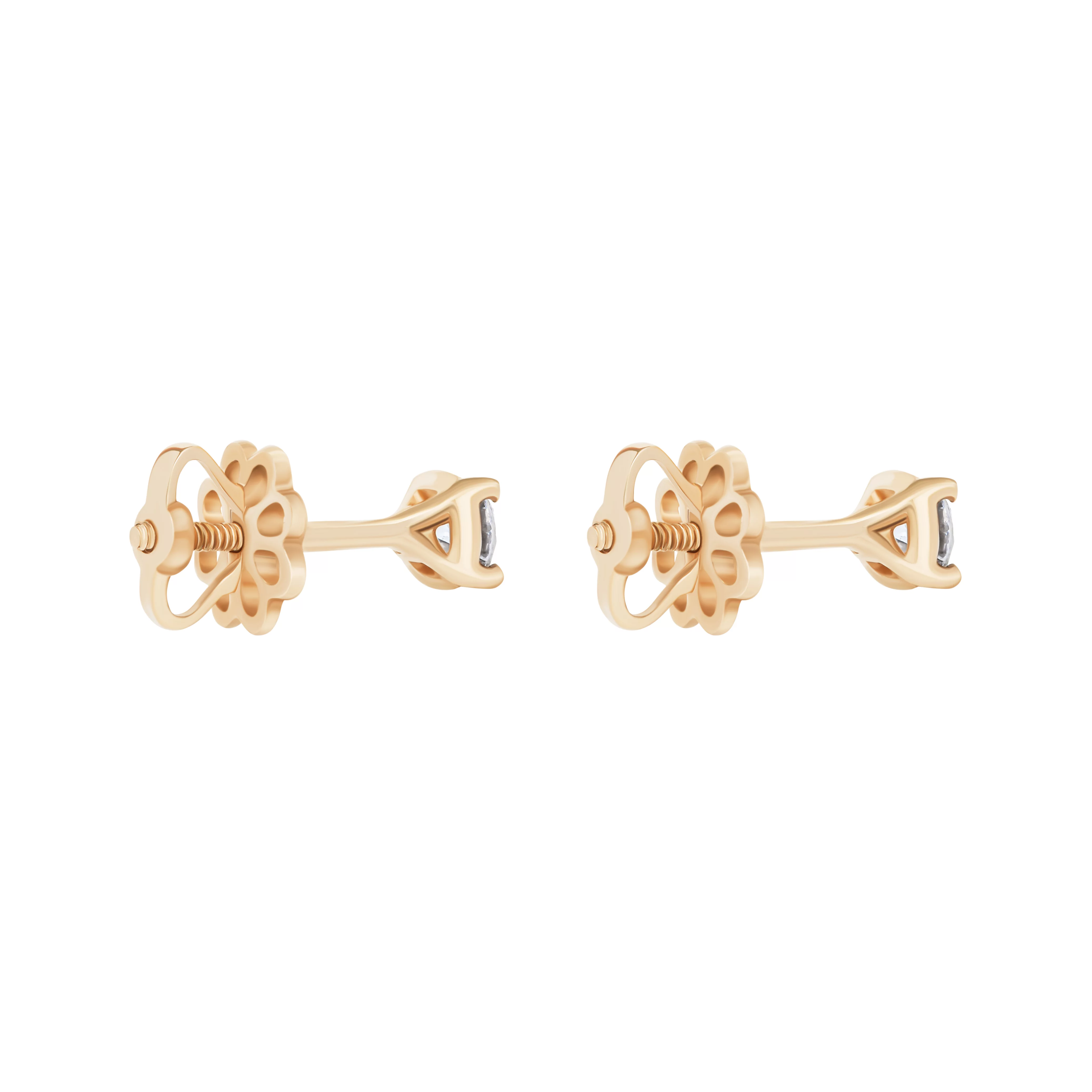 Сережки-гвоздики у стилі мінімалізм з червоного золота з діамантом - 1824423