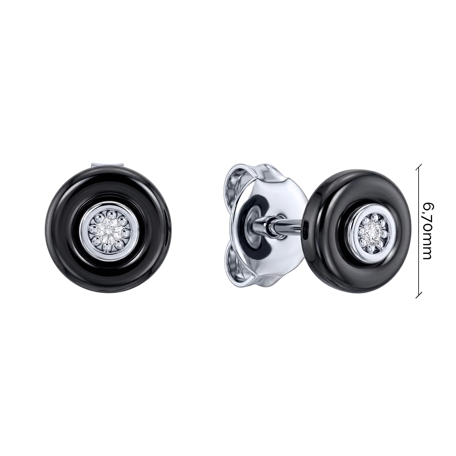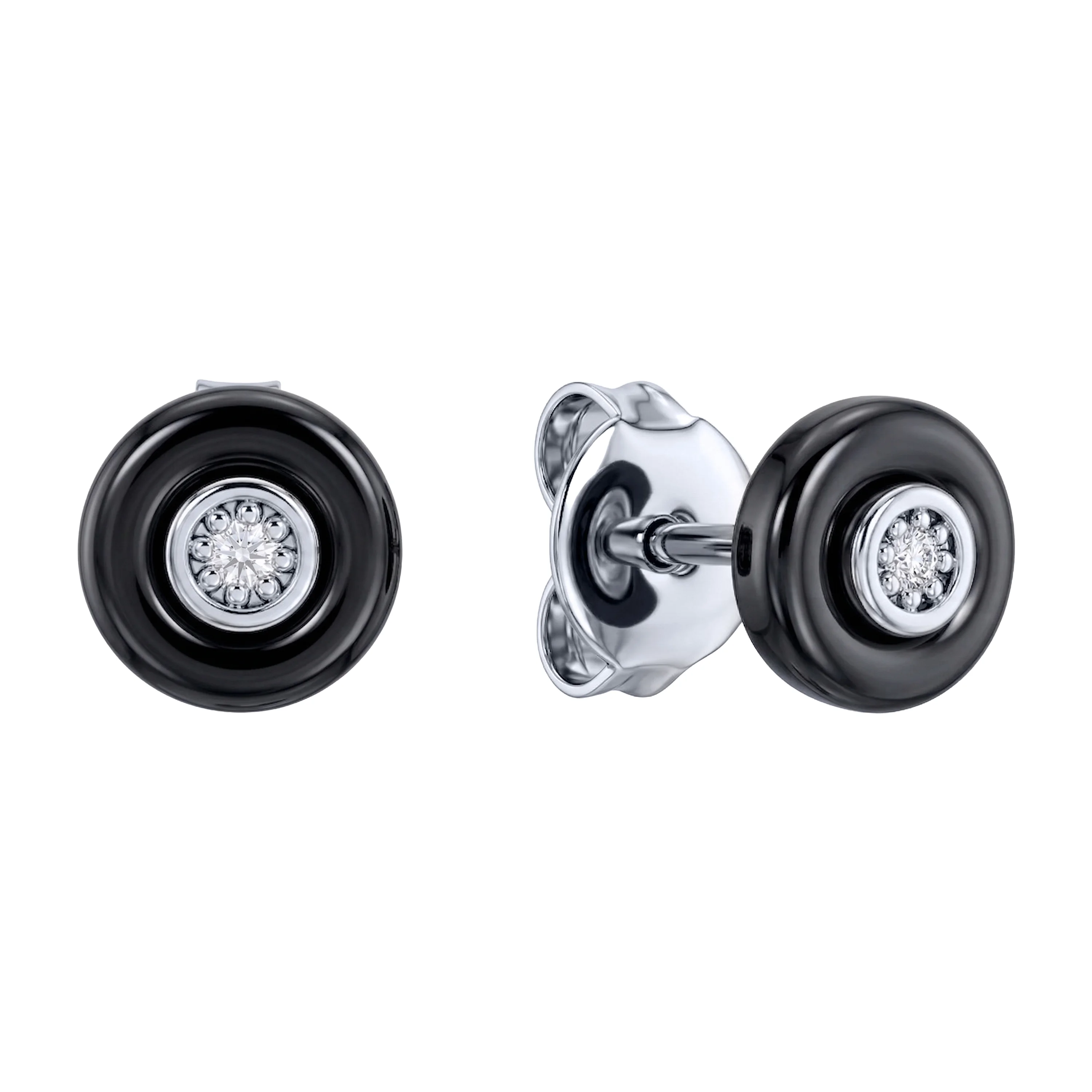 Сережки-пусети з фіанітом і керамікою у сріблі - 2211133