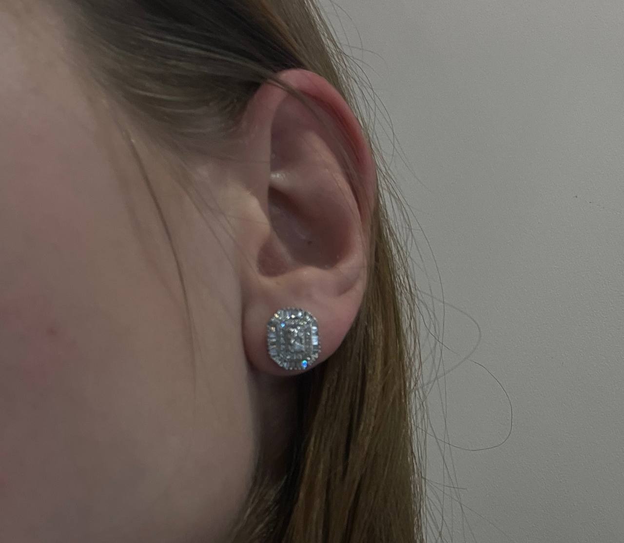 Сережки-пусети з розсипом діамантів та сапфіром у білому золоті - 1801644