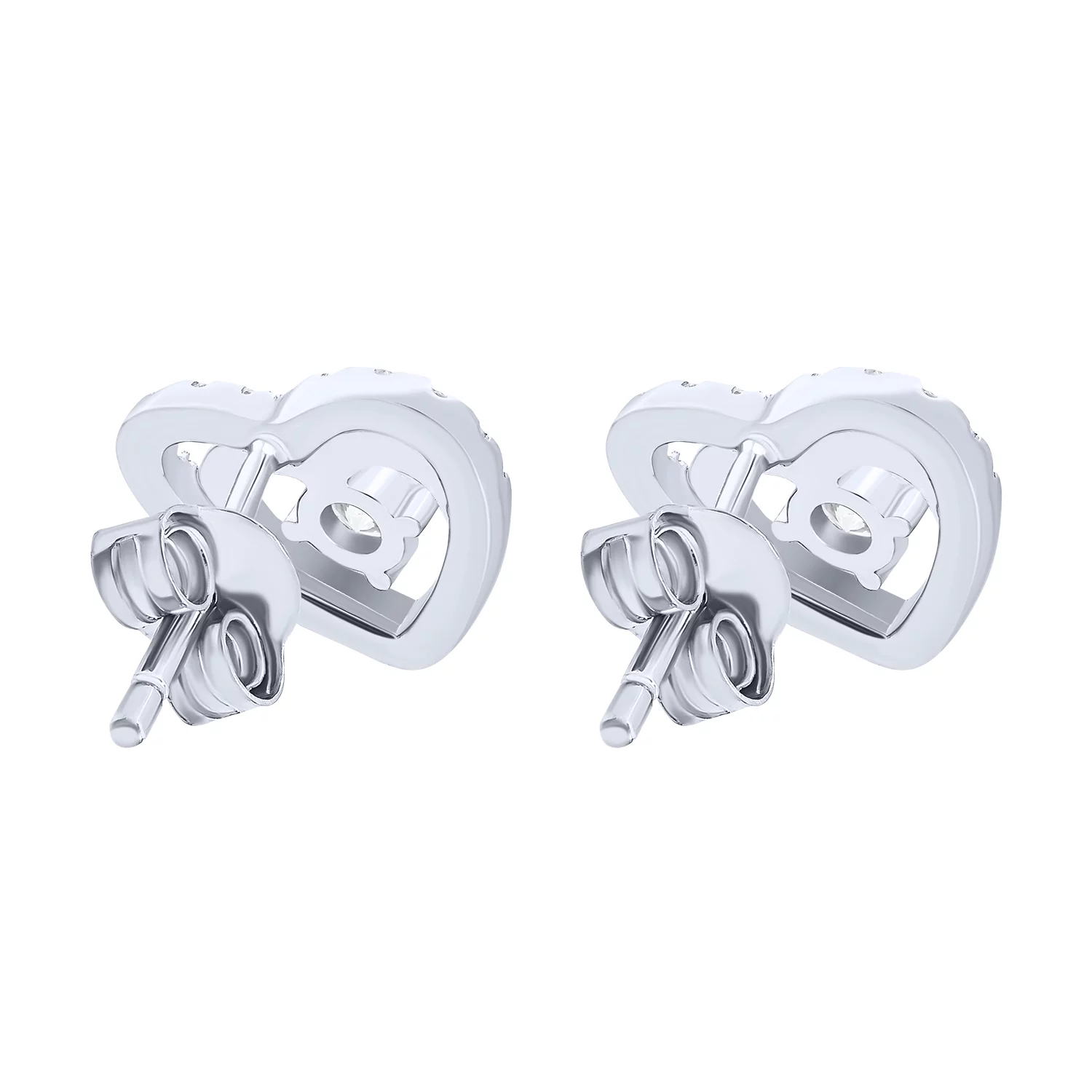 Сережки-гвоздики "Сердечка" срібні з фіанітами - 1626521