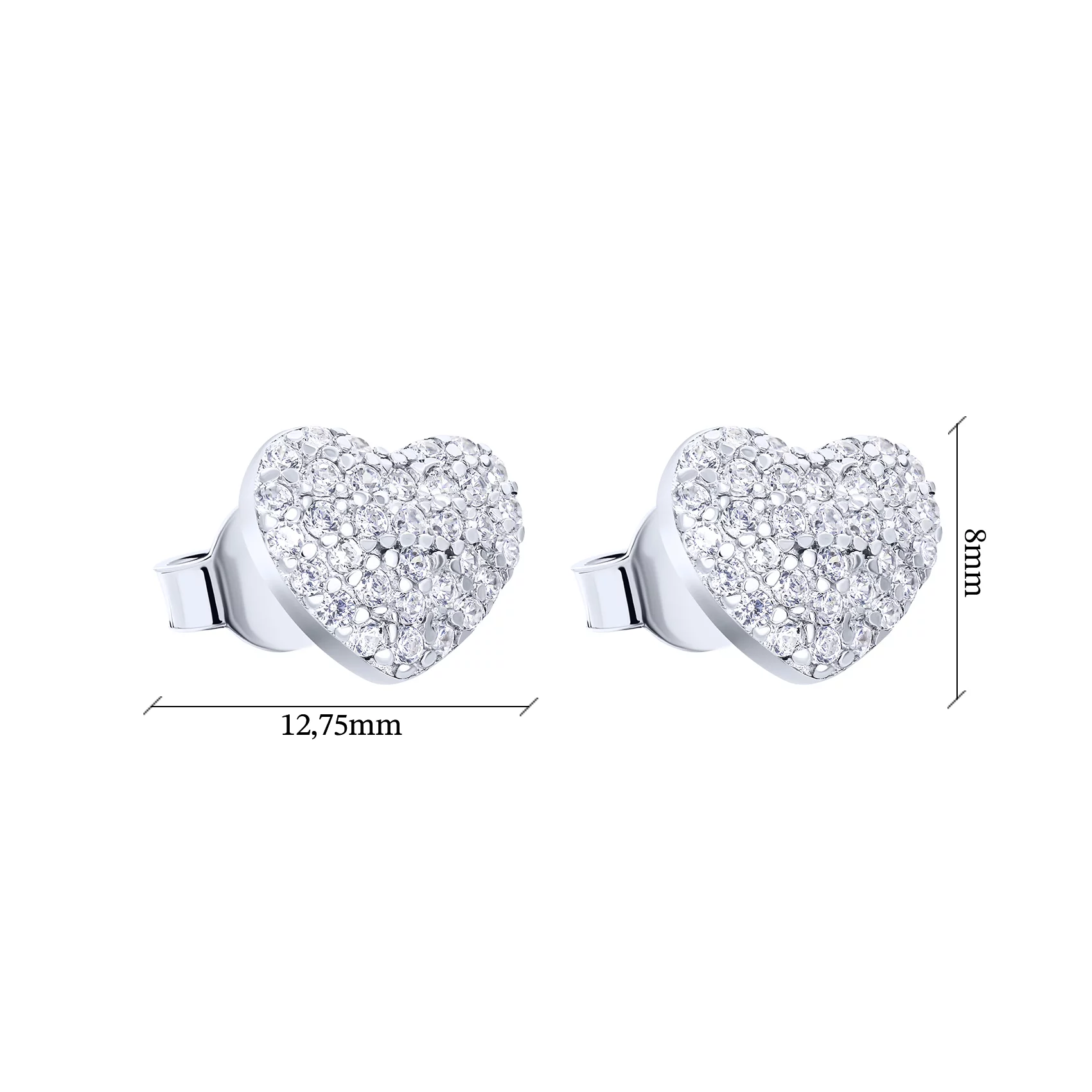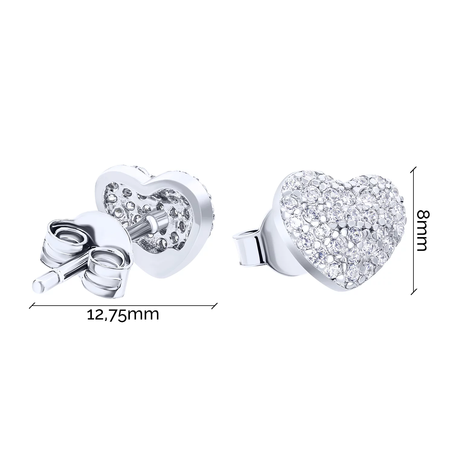 Сережки-гвоздики срібні з фіанітами у формі серця - 1572528