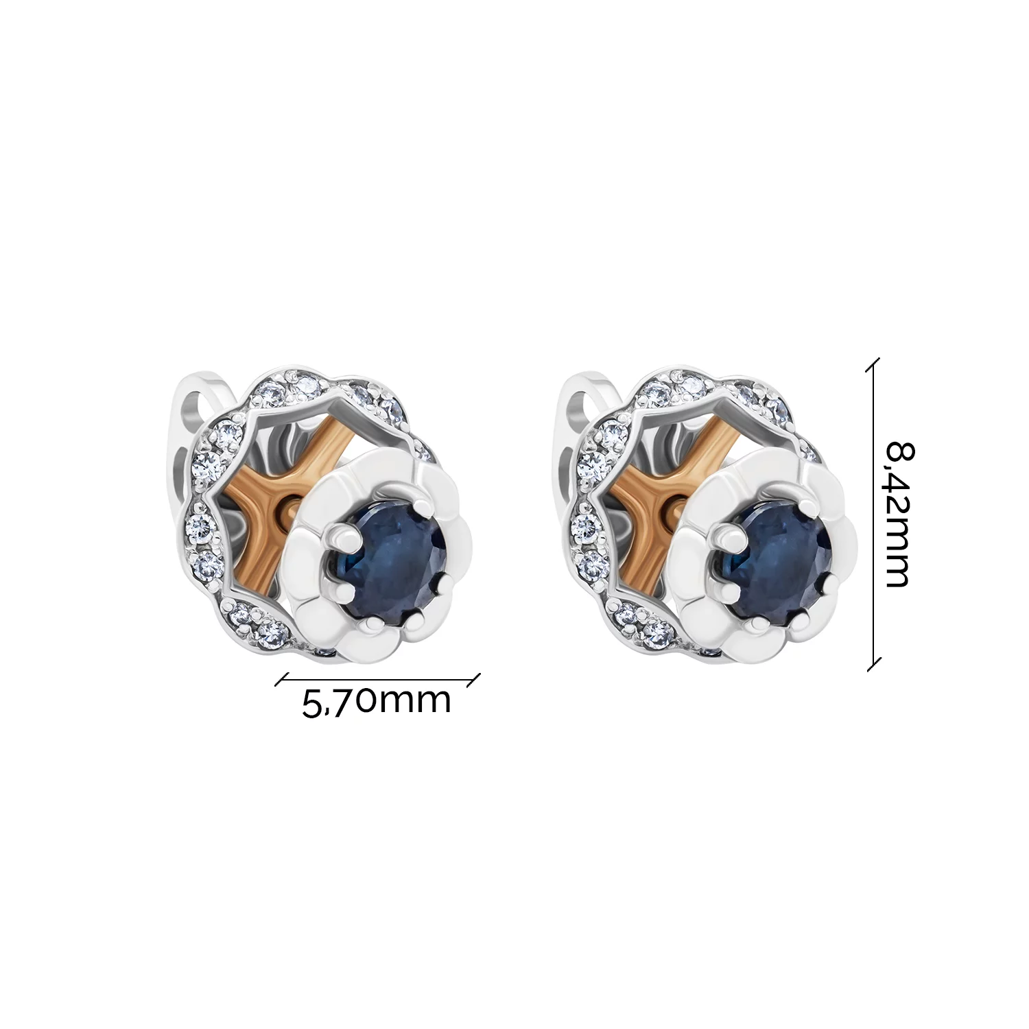 Сережки з червоного золота з підвісами сапфіром і діамантами - 1514621