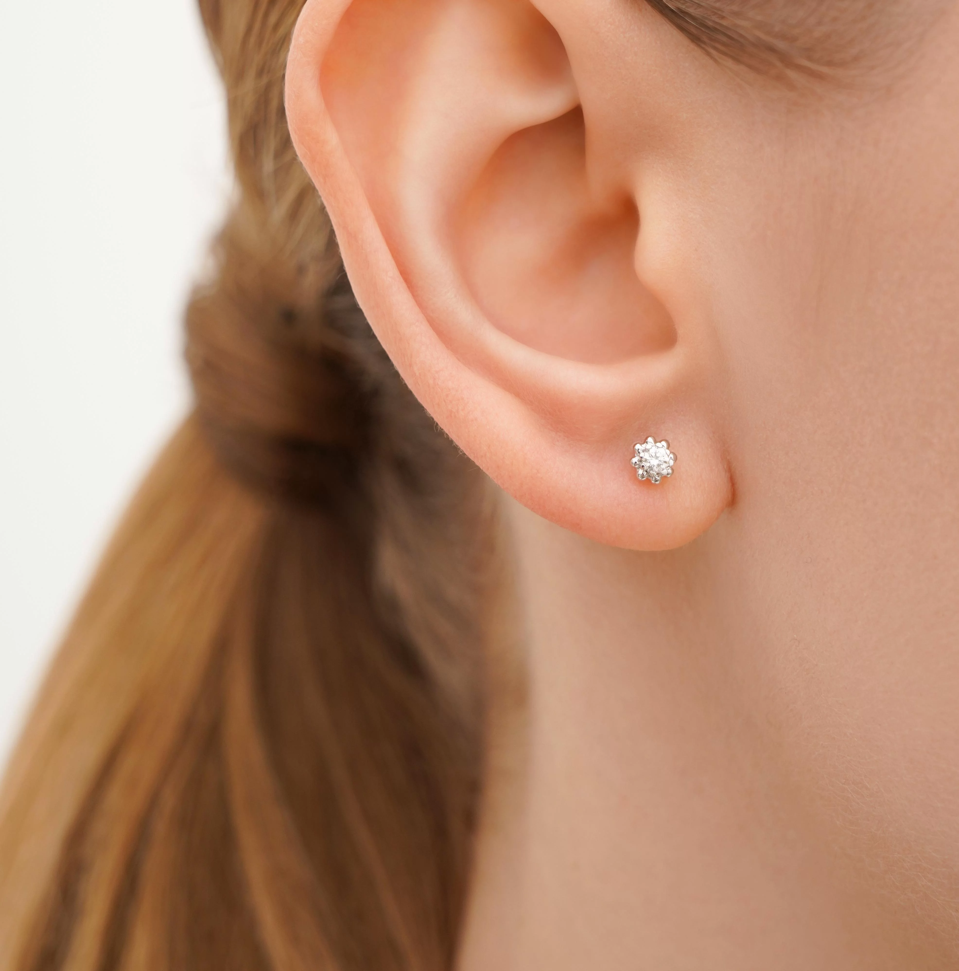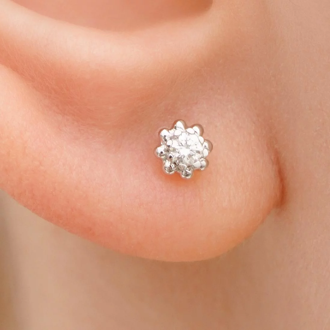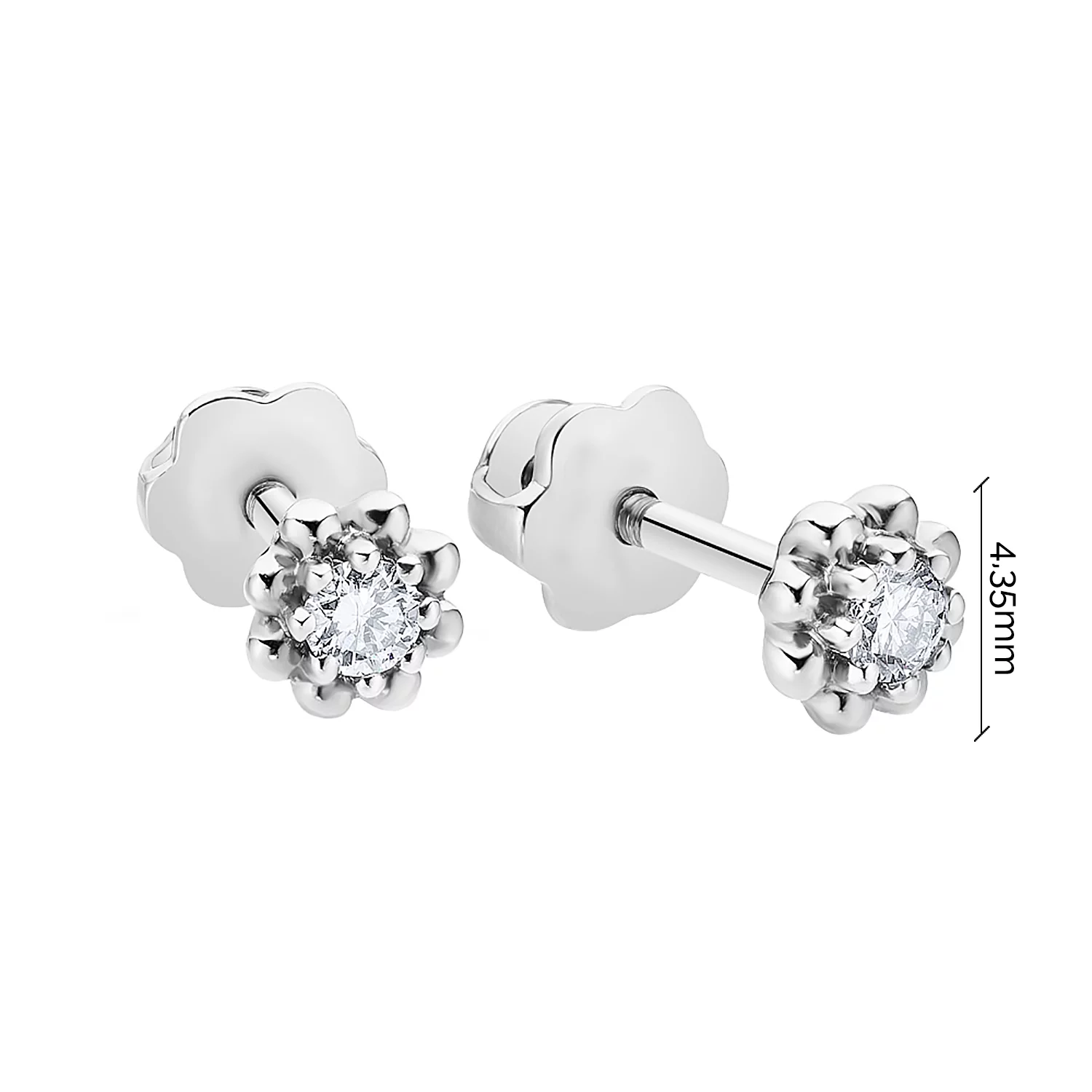 Сережки-гвоздики "Переплетіння" з білого золота з діамантами - 1737511