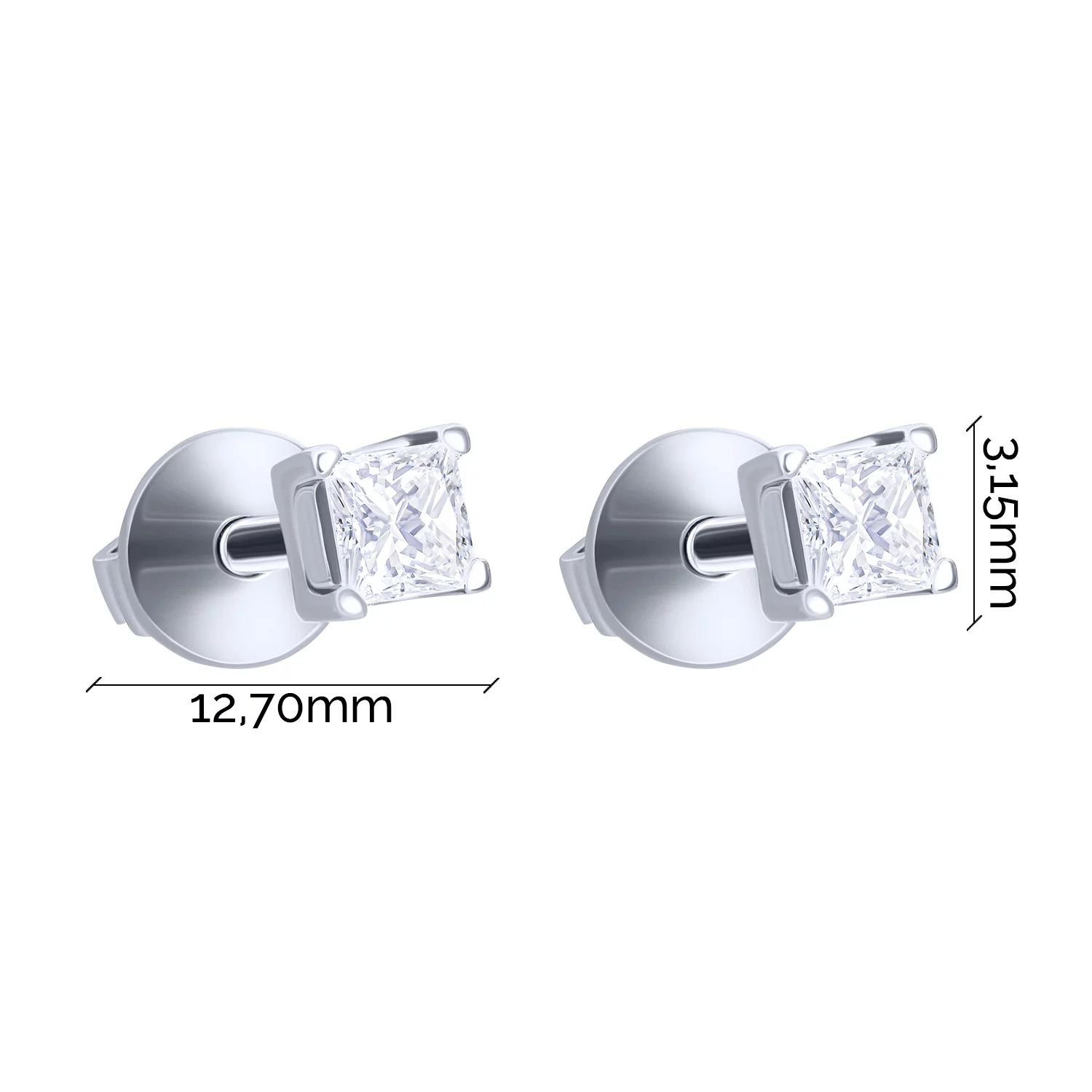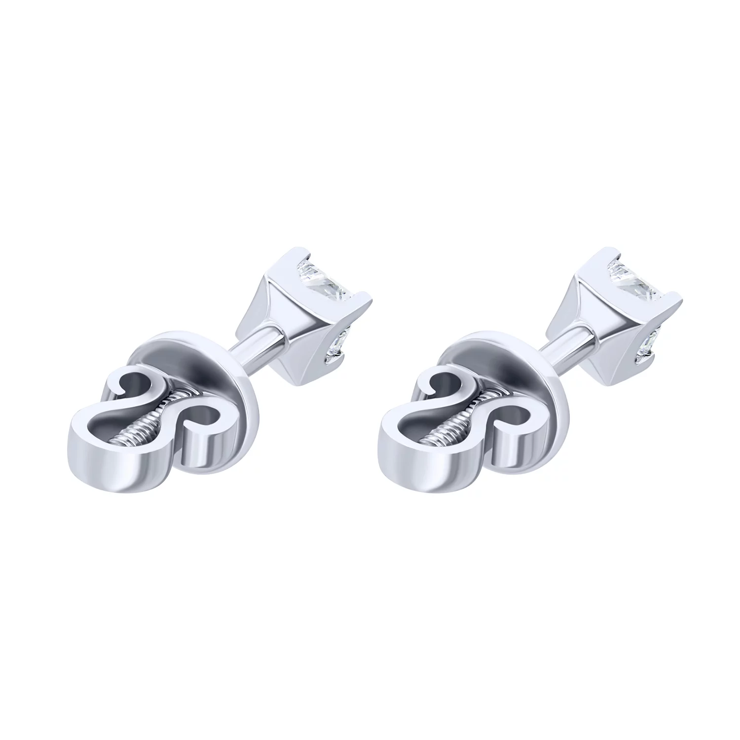 Сережки-гвоздики "Квадрат" з білого золота з діамантами та смарагдом - 1804068