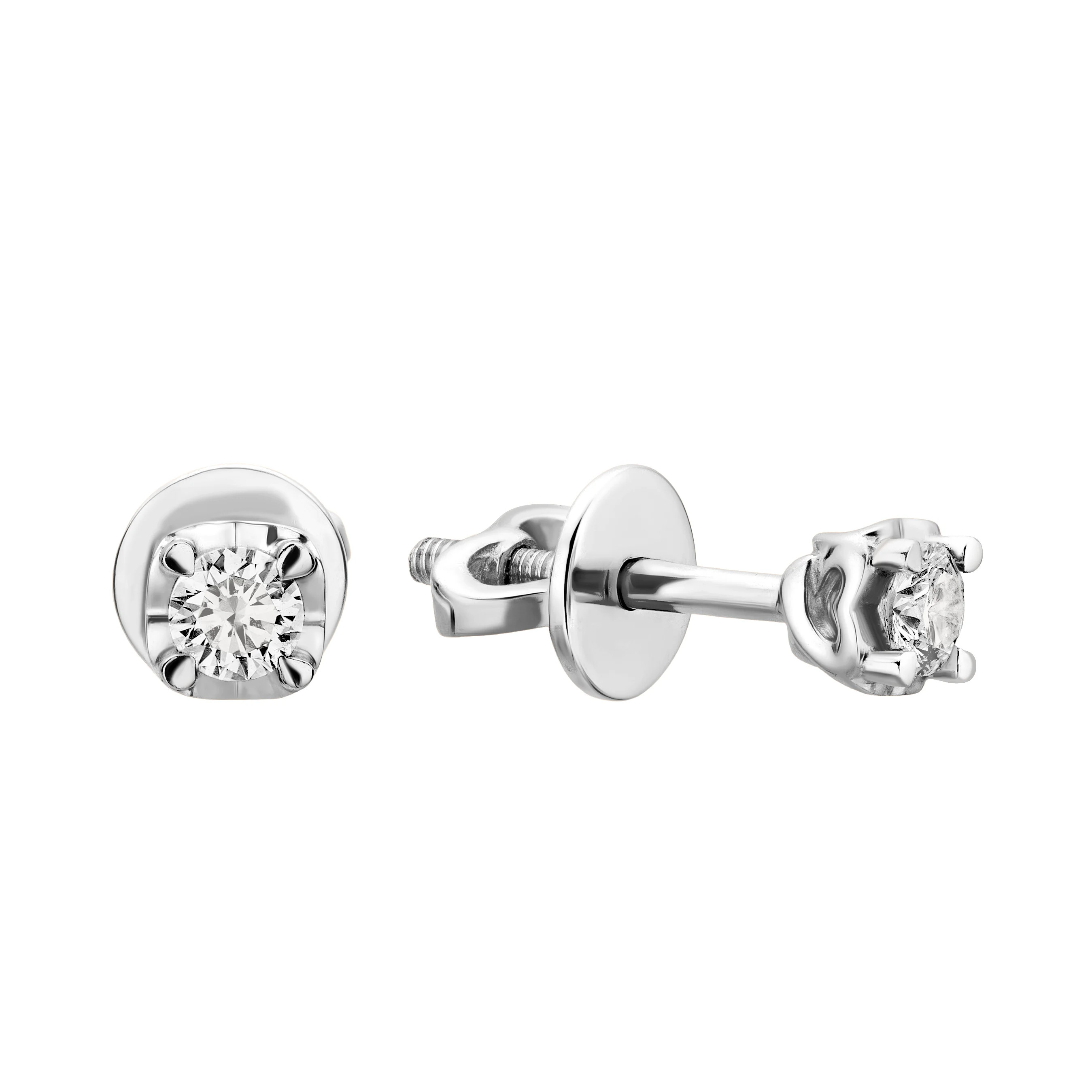 Сережки-пусети в білому золоті з діамантом - 2167124