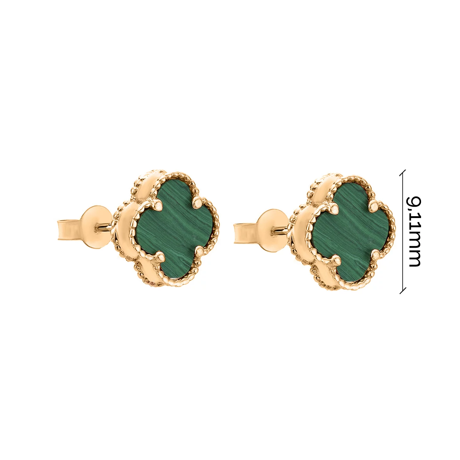 Сережки-гвоздики в червоному золоті "Конюшина" з малахітом - 1733911