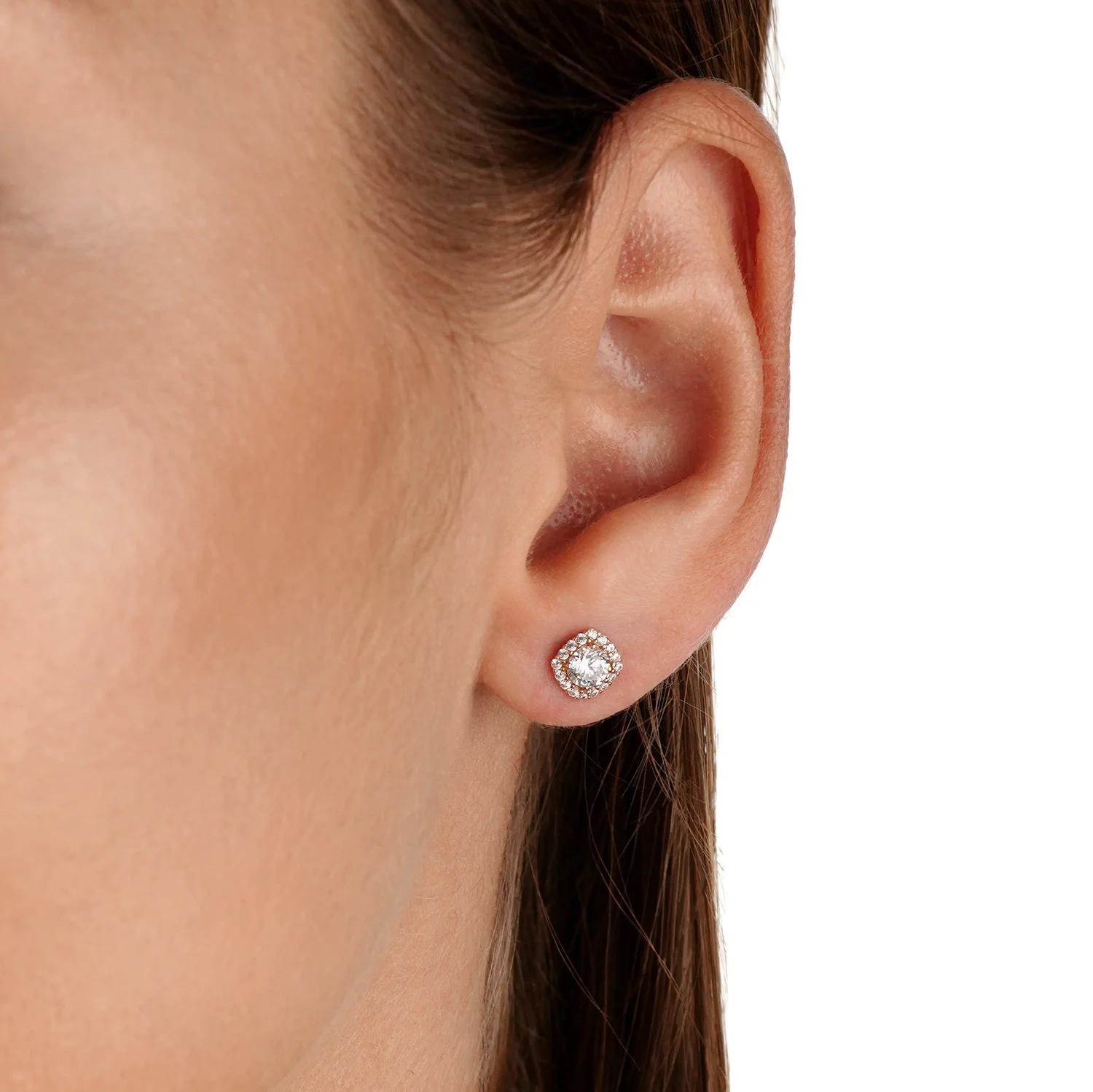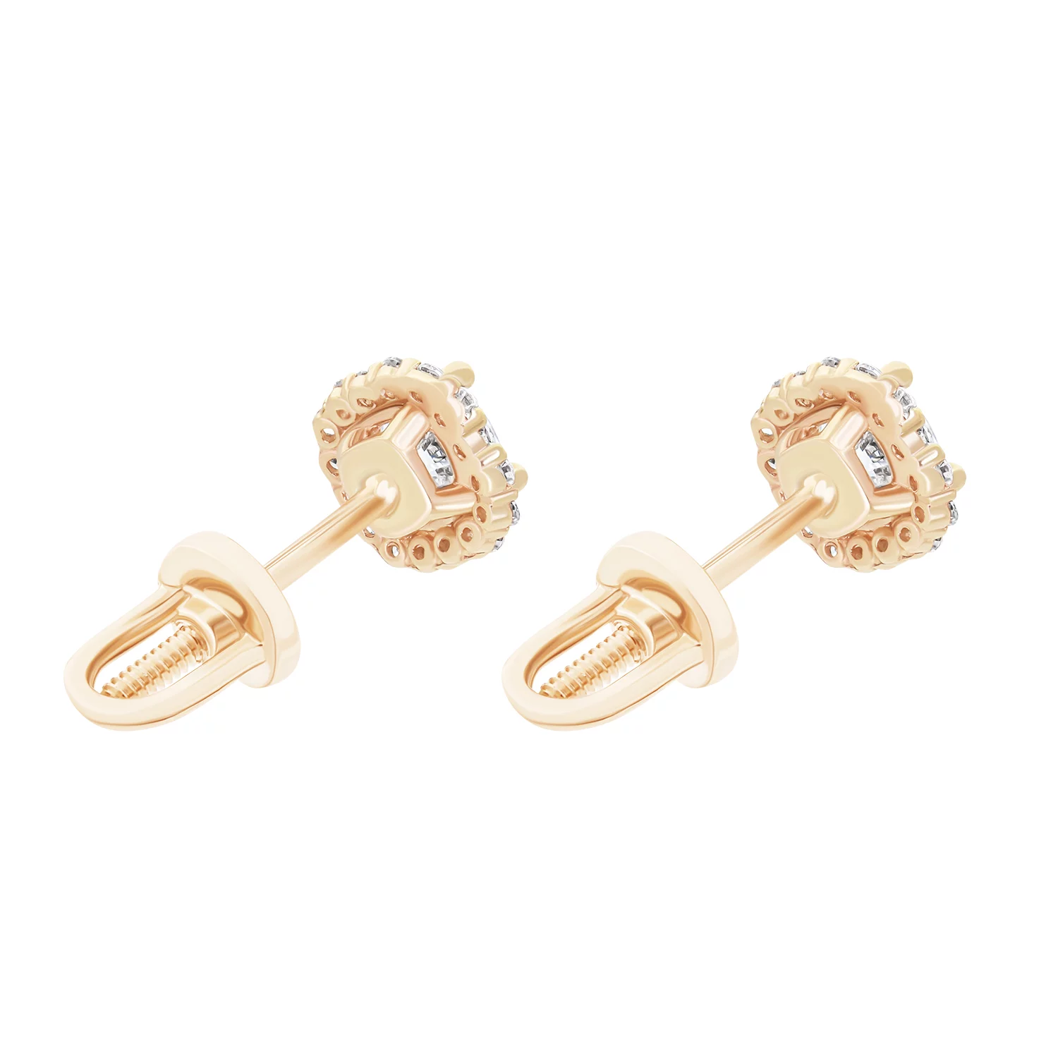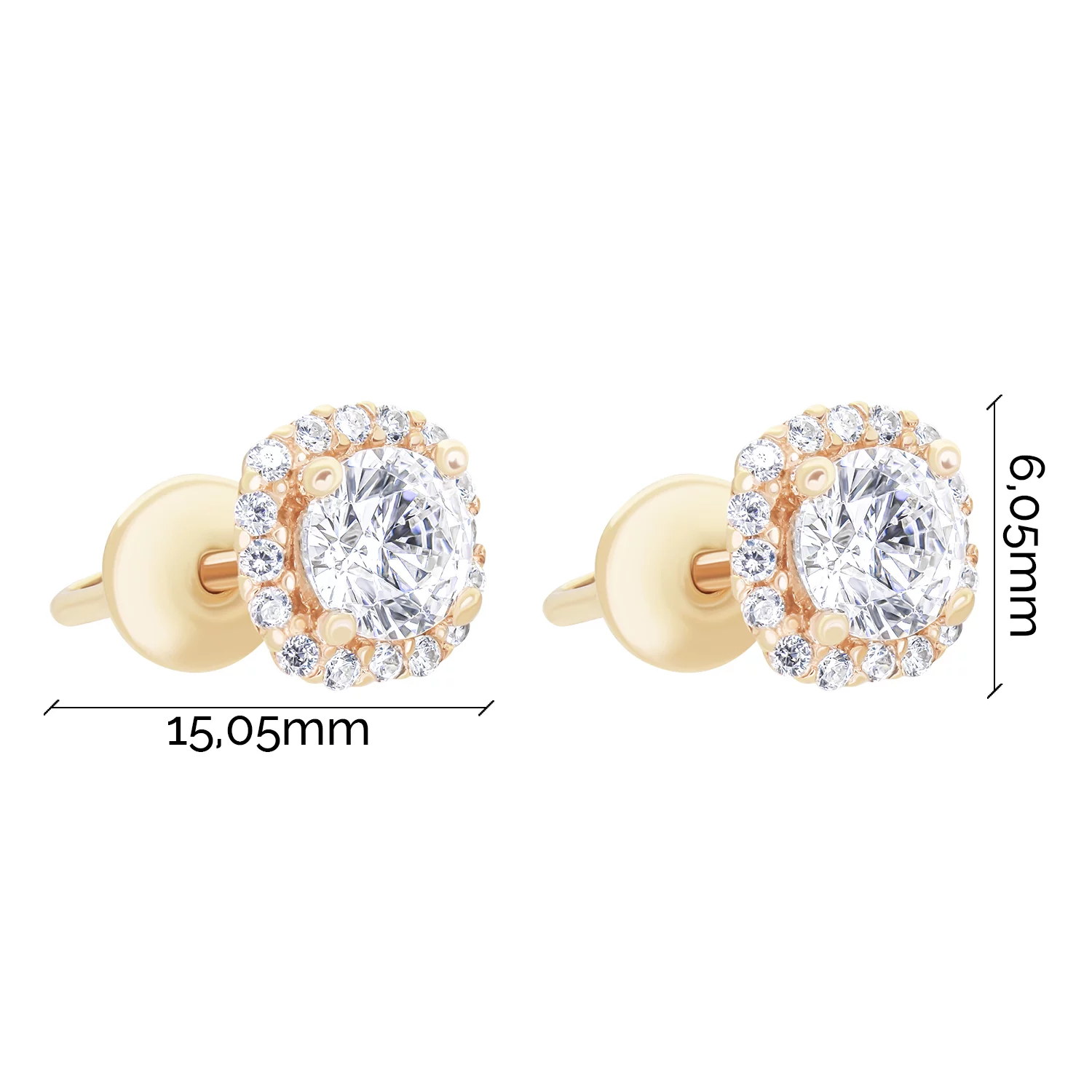 Сережки-гвоздики в червоному золоті з фіанітами - 1744123