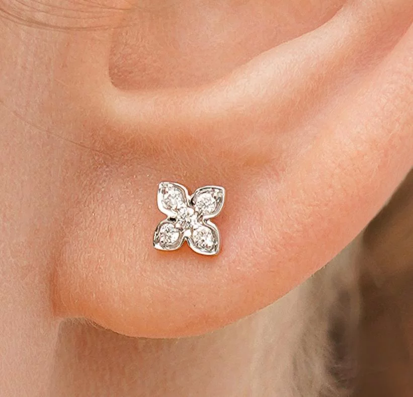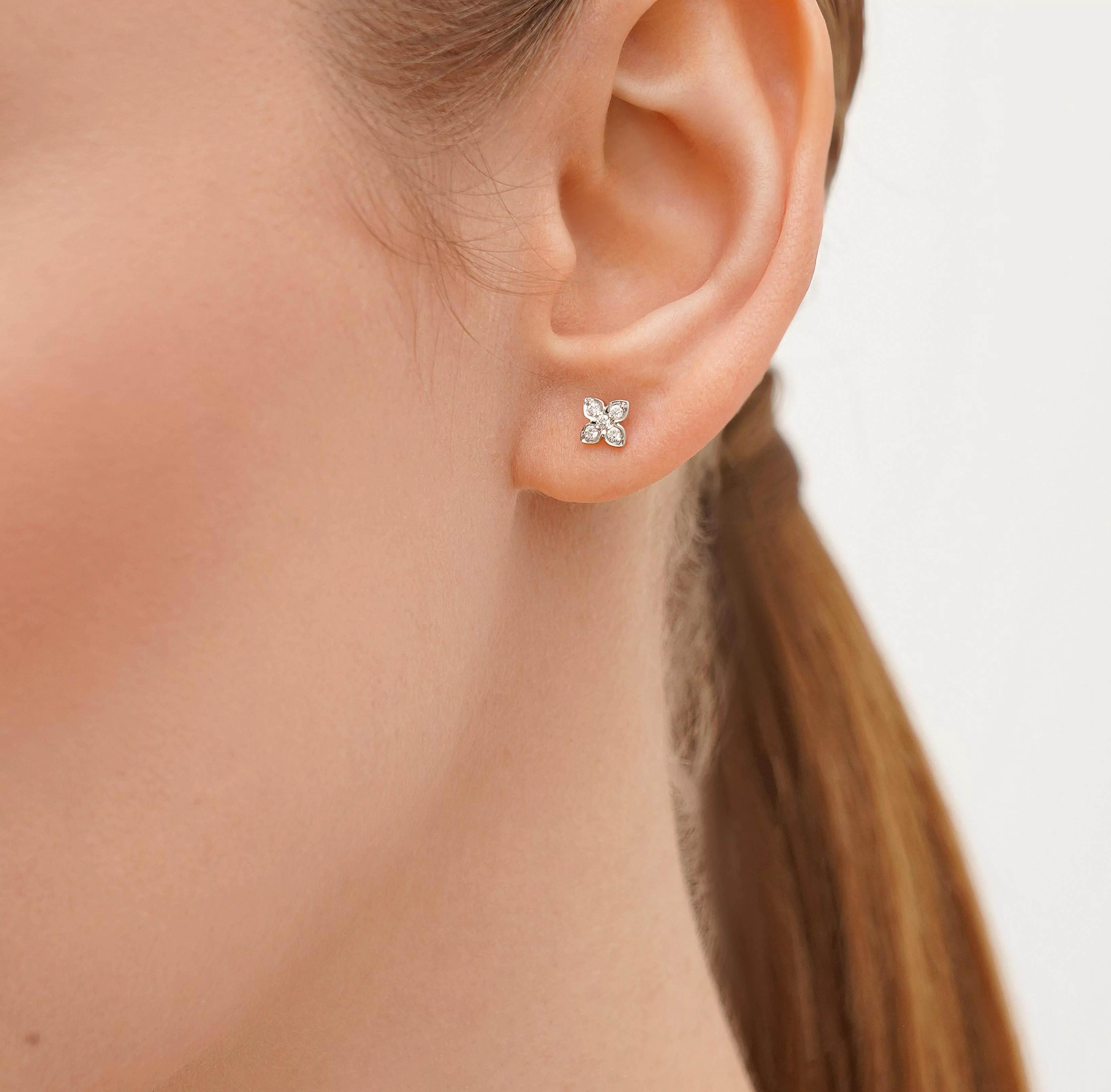Круглі сережки-гвоздики з розсипом діамантів із білого золота - 1738517