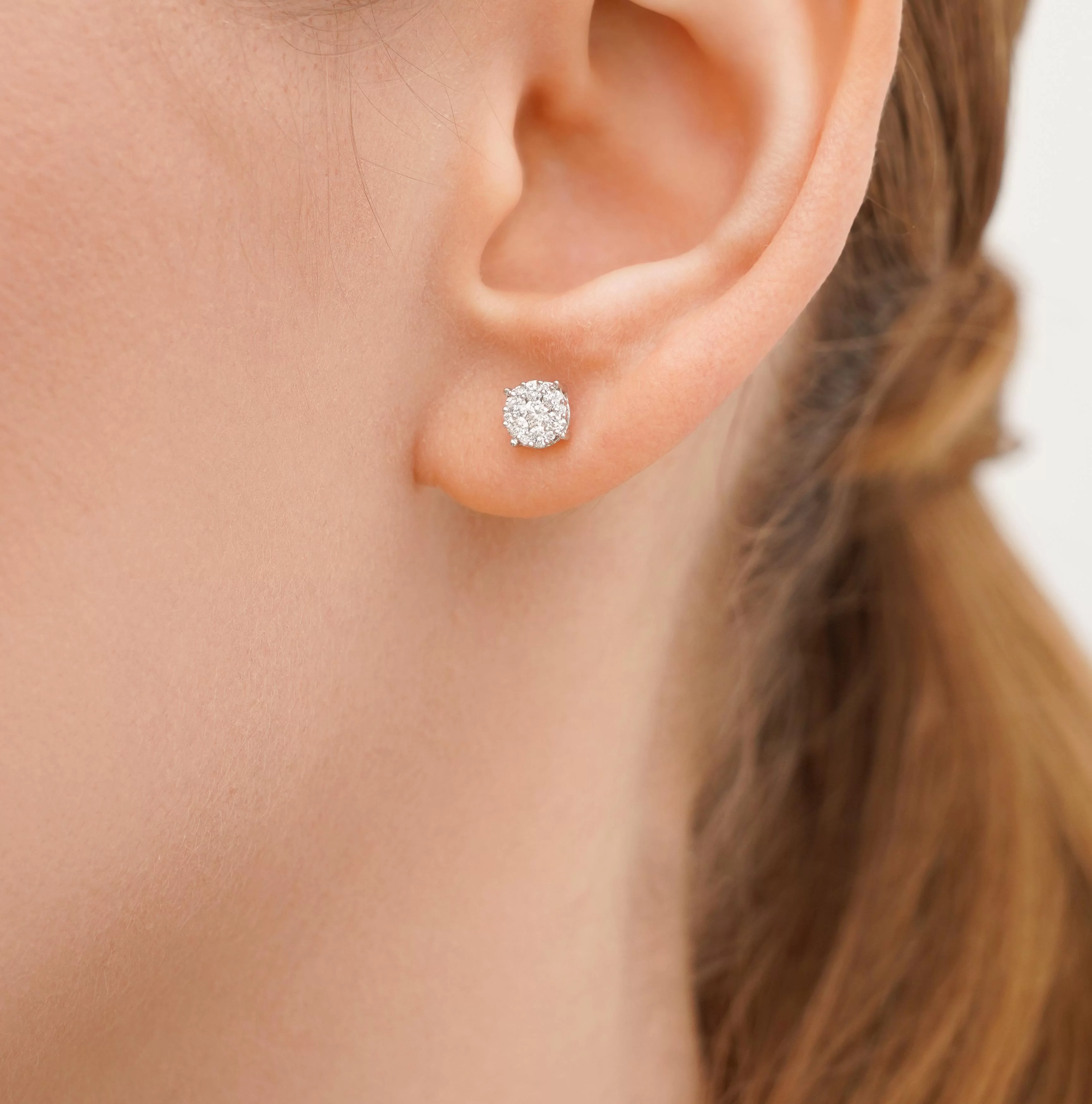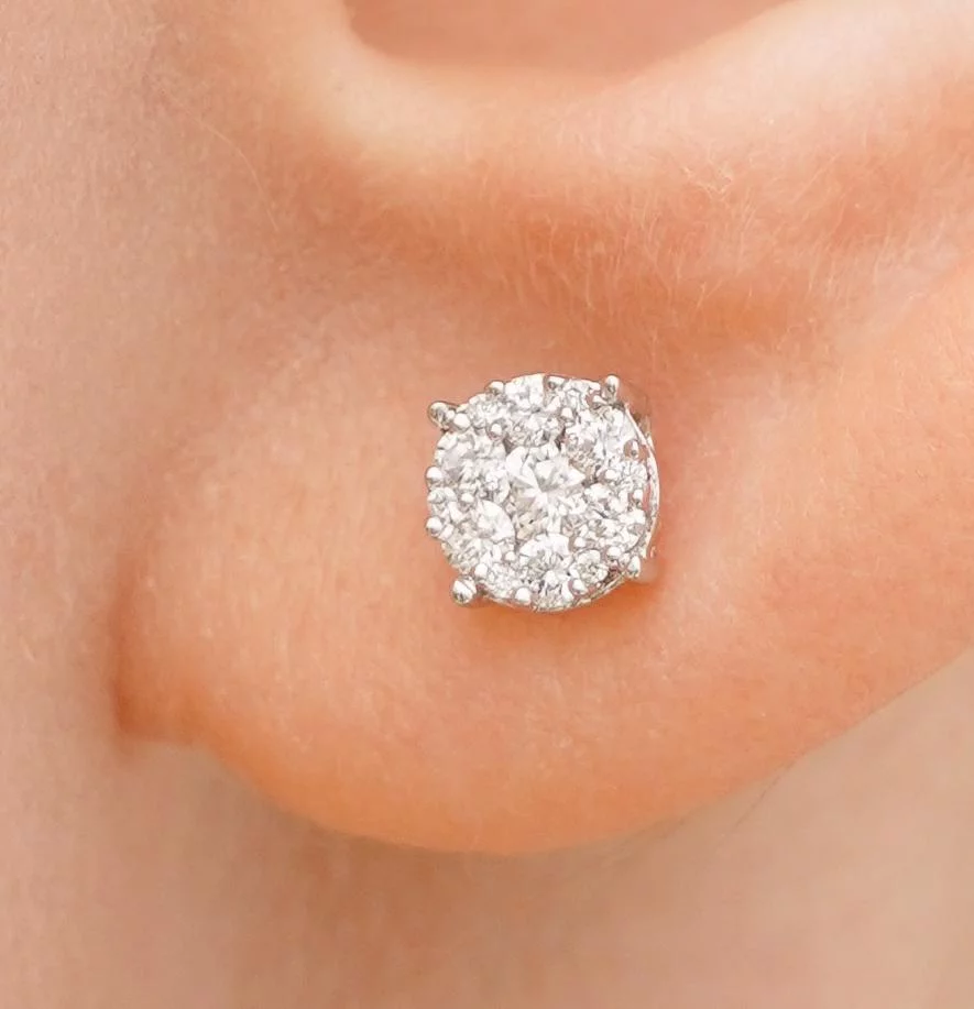 Елегантні сережки-гвоздики "Квіточка" у білому золоті з діамантами - 1958571