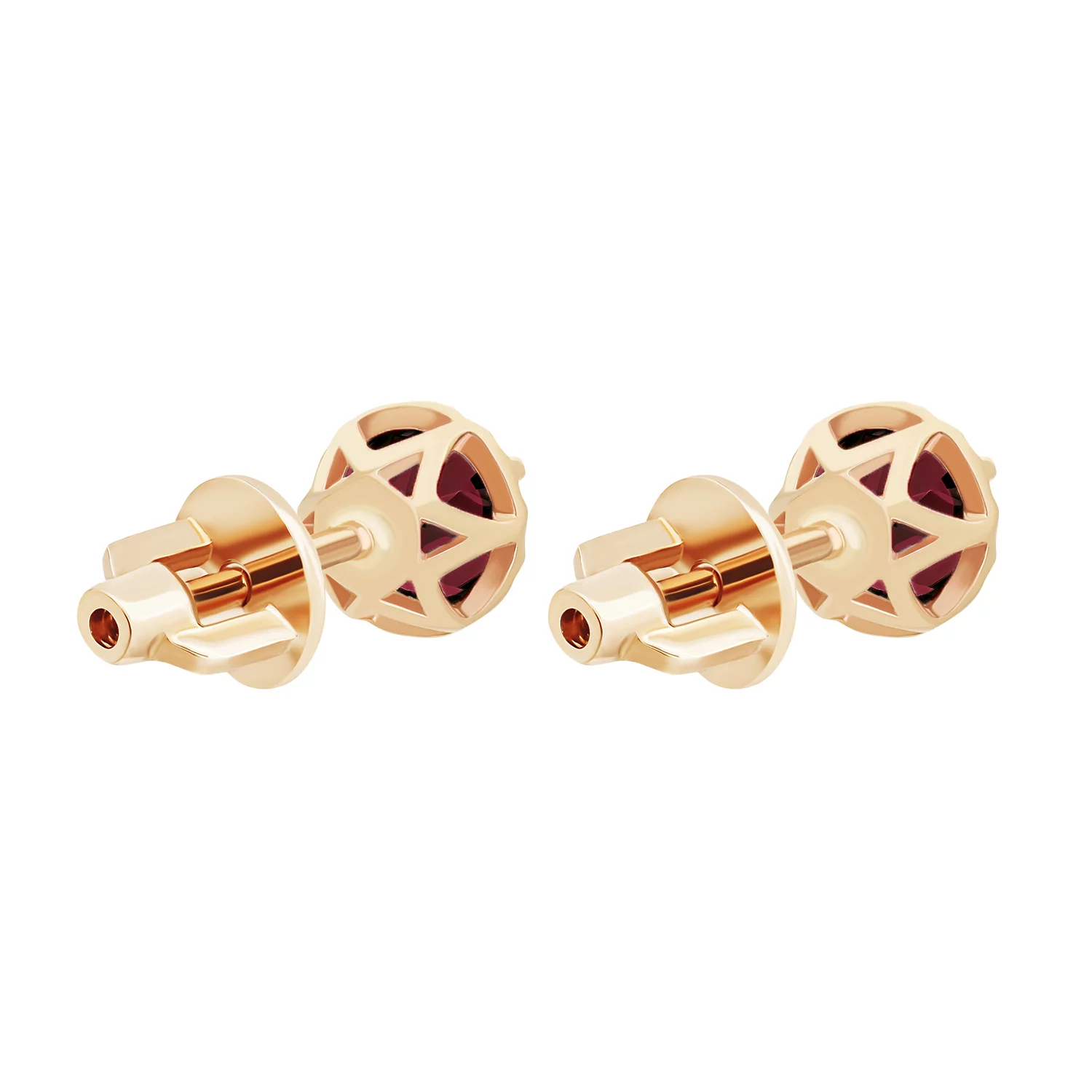 Сережки "Квадрат" у червоному золоті з гранатом та фіанітами - 1925554