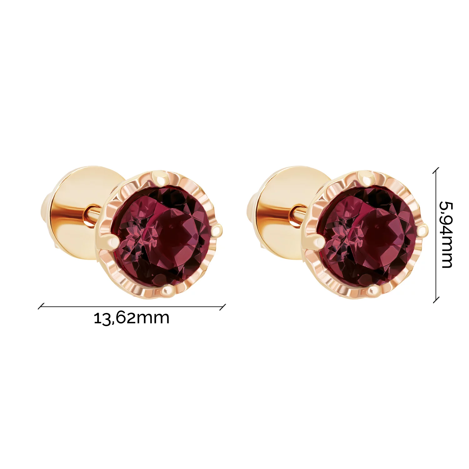Елегантні сережки-гвоздики у червоному золоті з турмаліном та фіанітами - 1939009