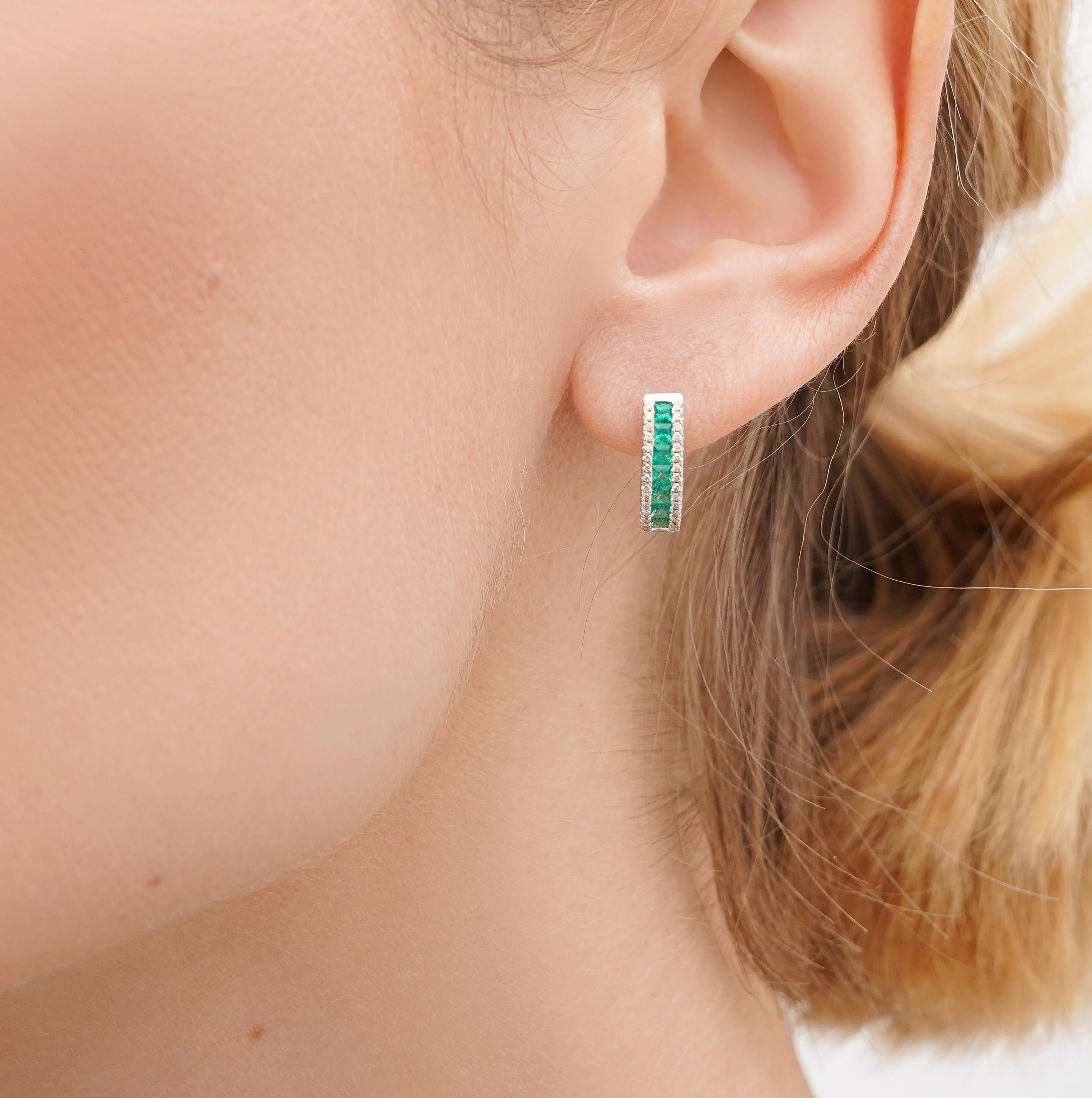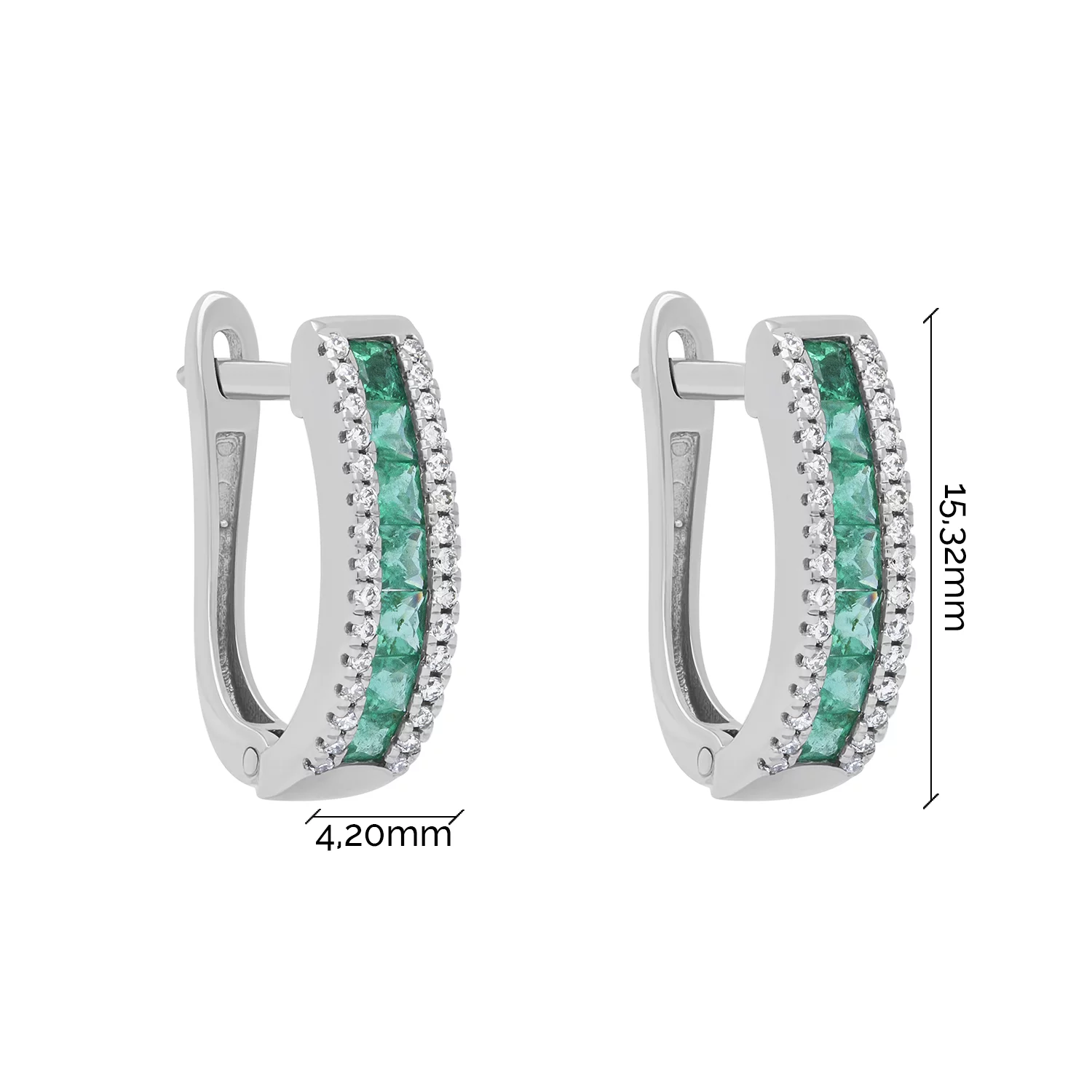 Сережки-гвоздики "Квадрат" з білого золота з діамантами та смарагдом - 1804068
