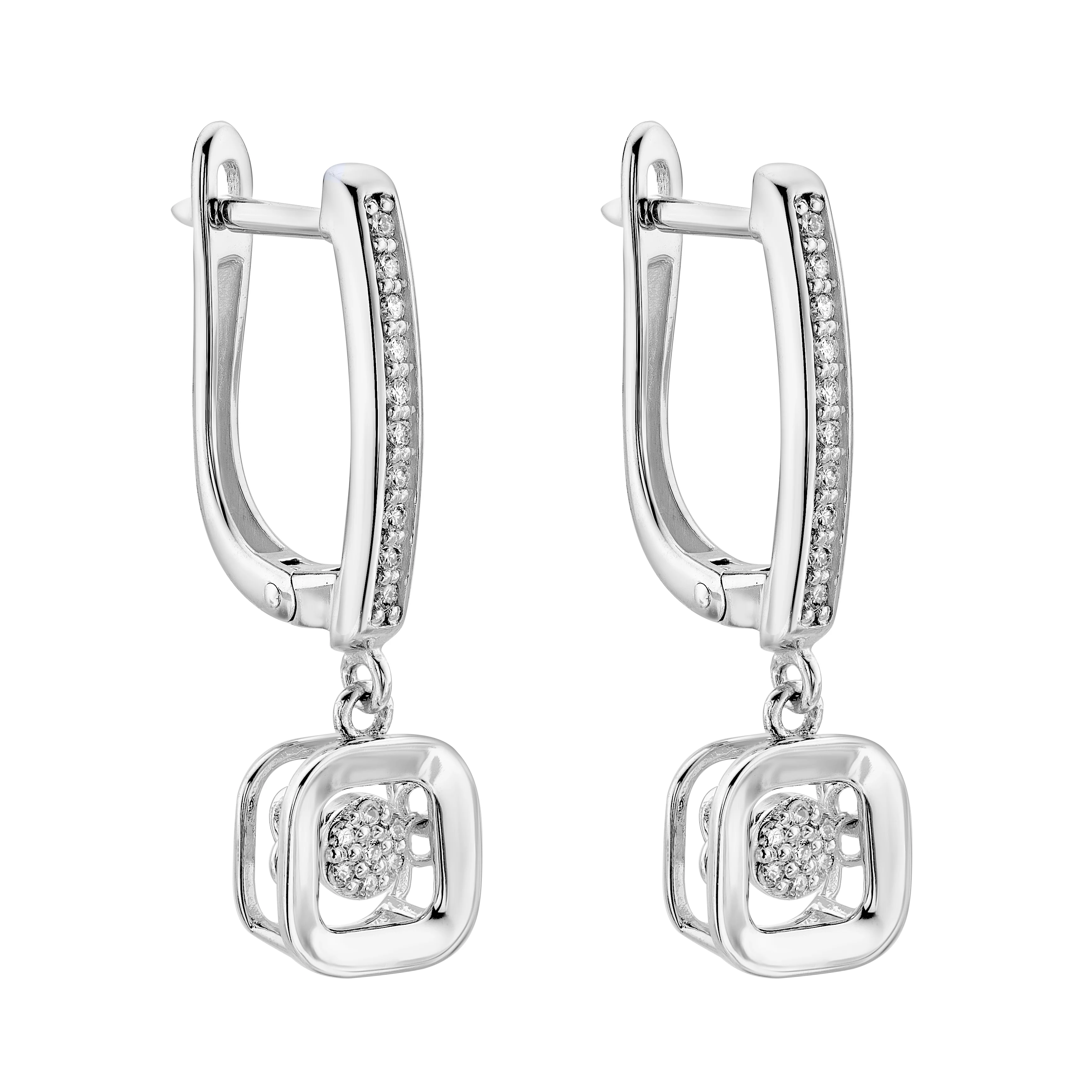 Екстравагантні сережки у формі квадрата з білого золота з діамантами - 1876575