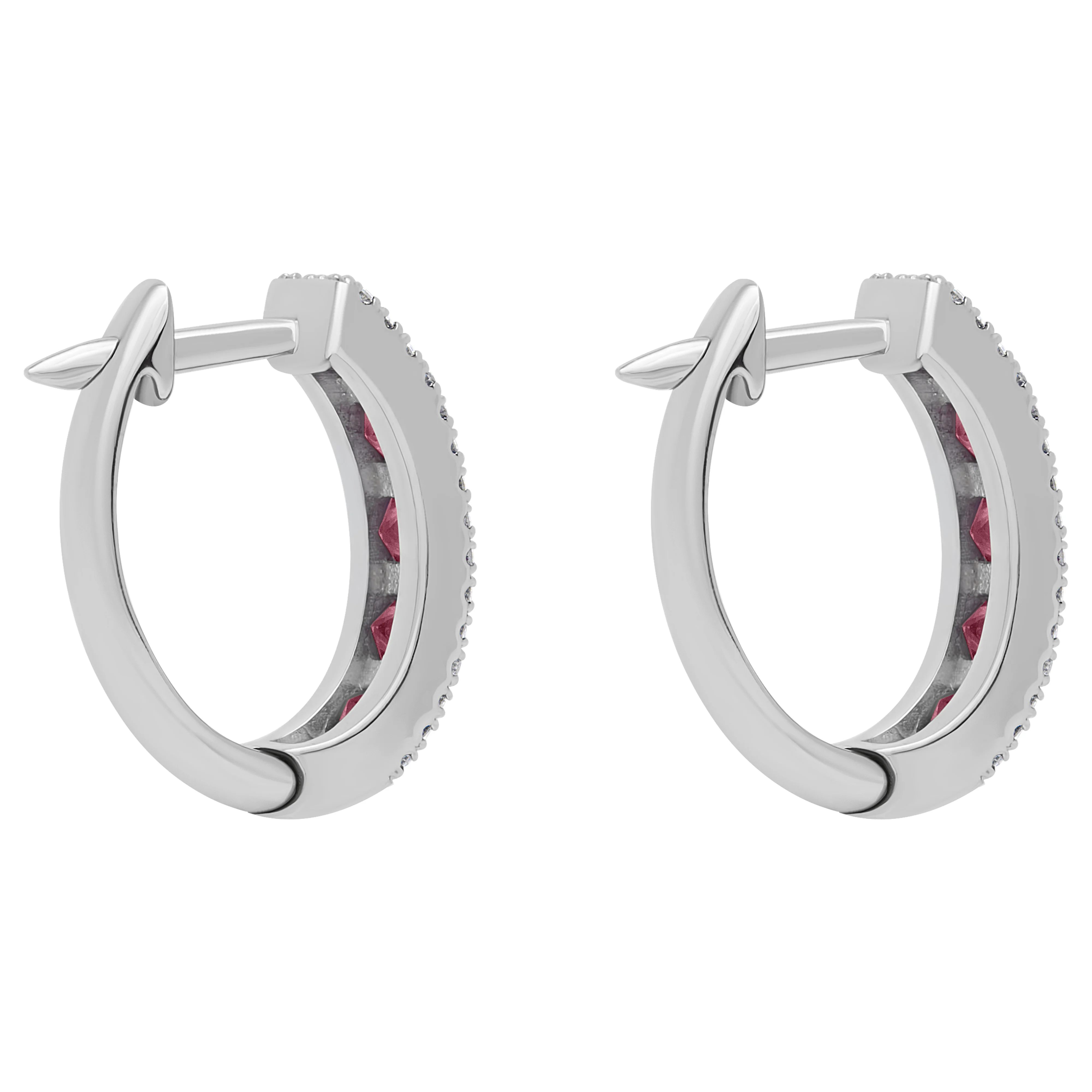 Сережки-кільця в мінімалістичному стилі з білого золота з діамантом - 1872161
