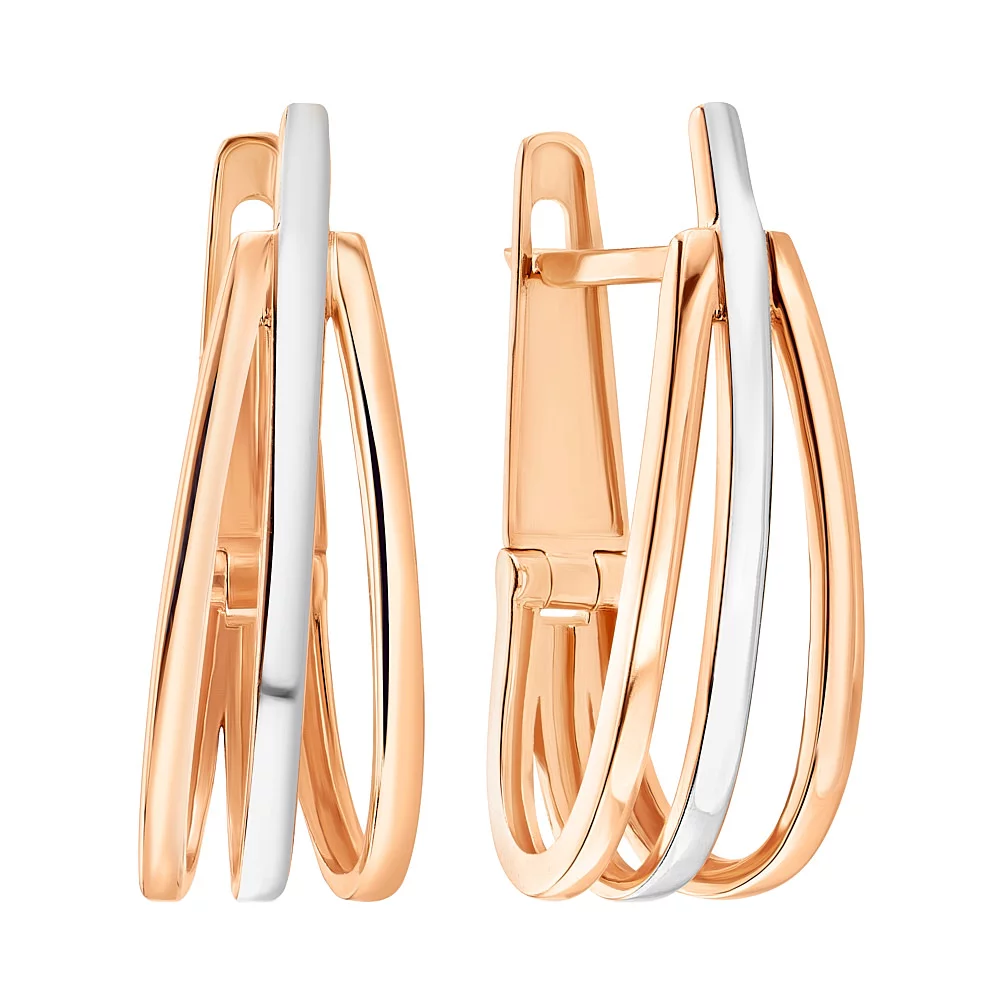 Сережки з червоного золота з підвісами "Кільця" з алмазною гранню - 1562490