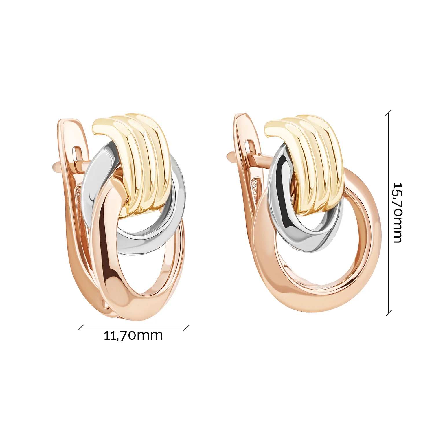 Сережки з комбінованого золота "Трініті" - 2054889