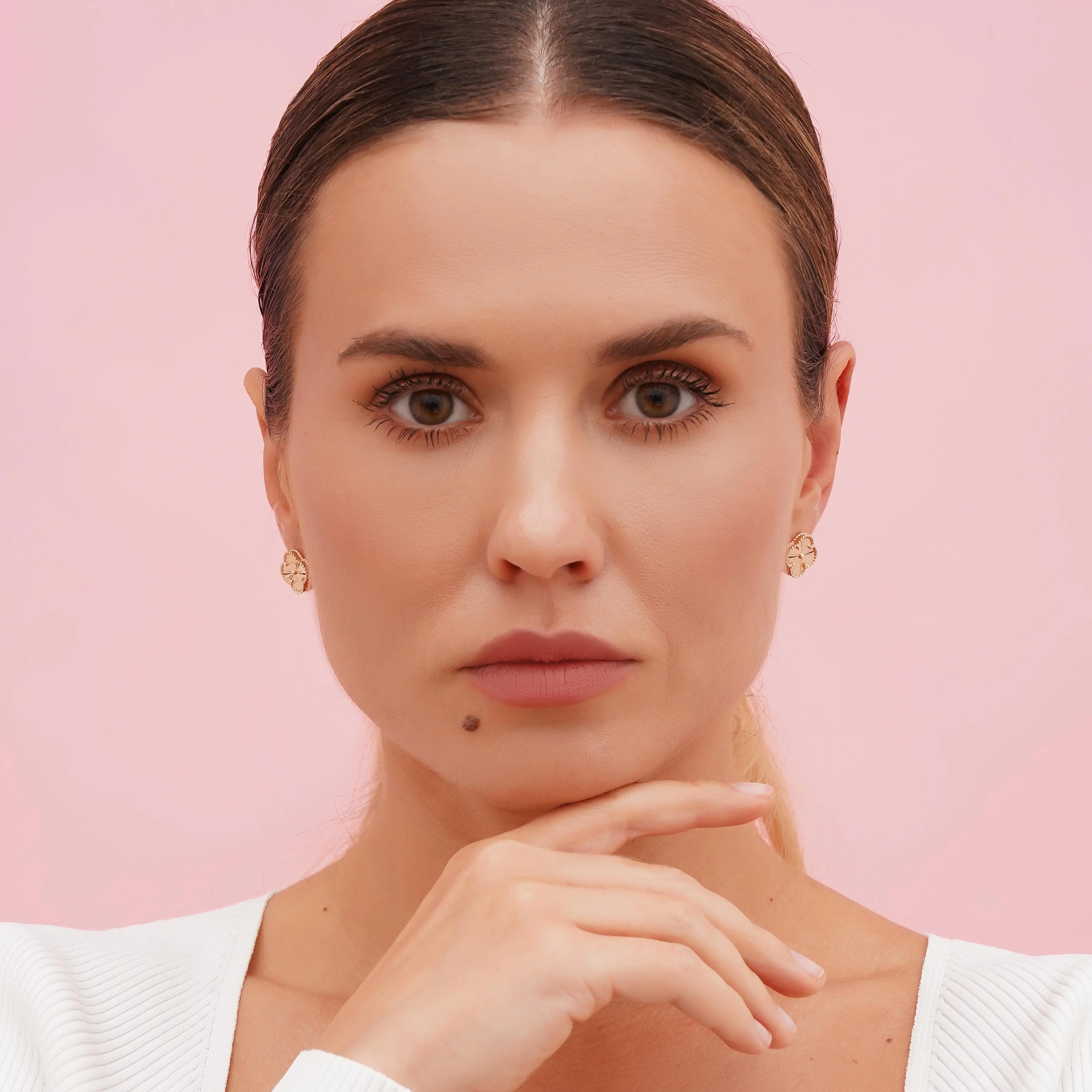 Сережки-гвоздики "Конюшина" з червоного золота з алмазною гранню - 1748319