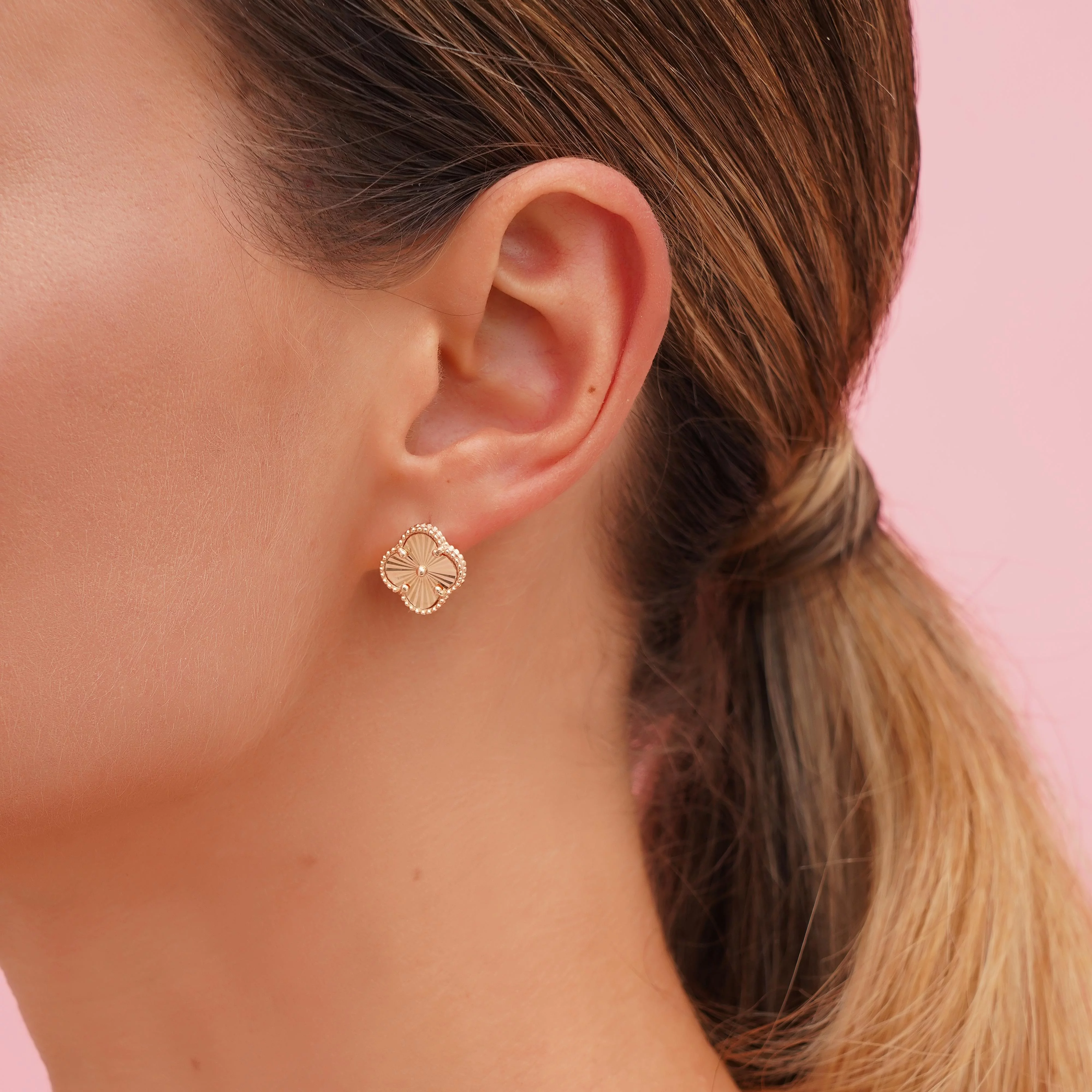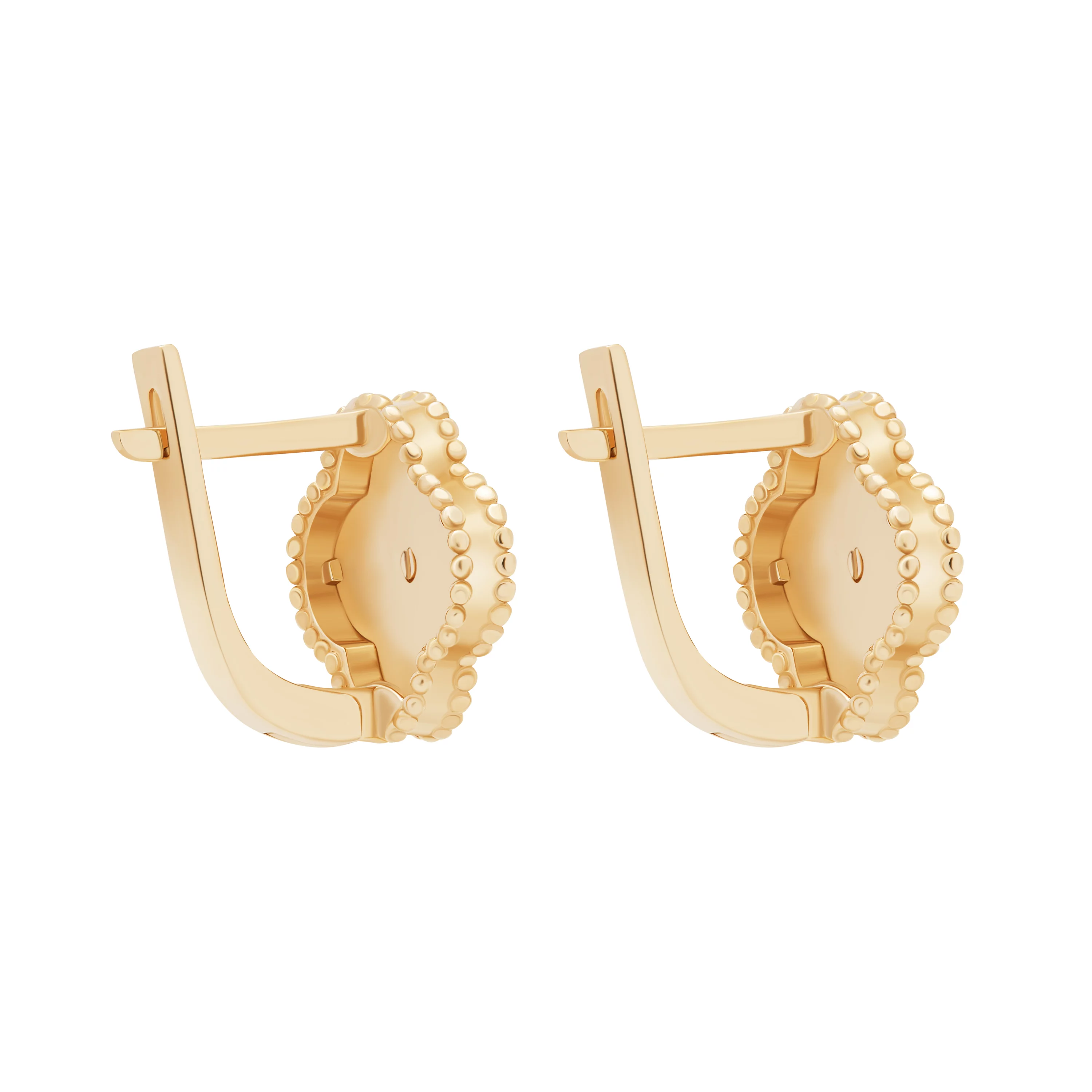 Стильні сережки "Конюшина" з алмазною гранню в червоному золоті - 1858784