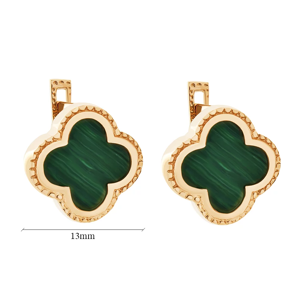 Сережки з червоного золота з підвіскою "Конюшина" з малахітом - 1747534