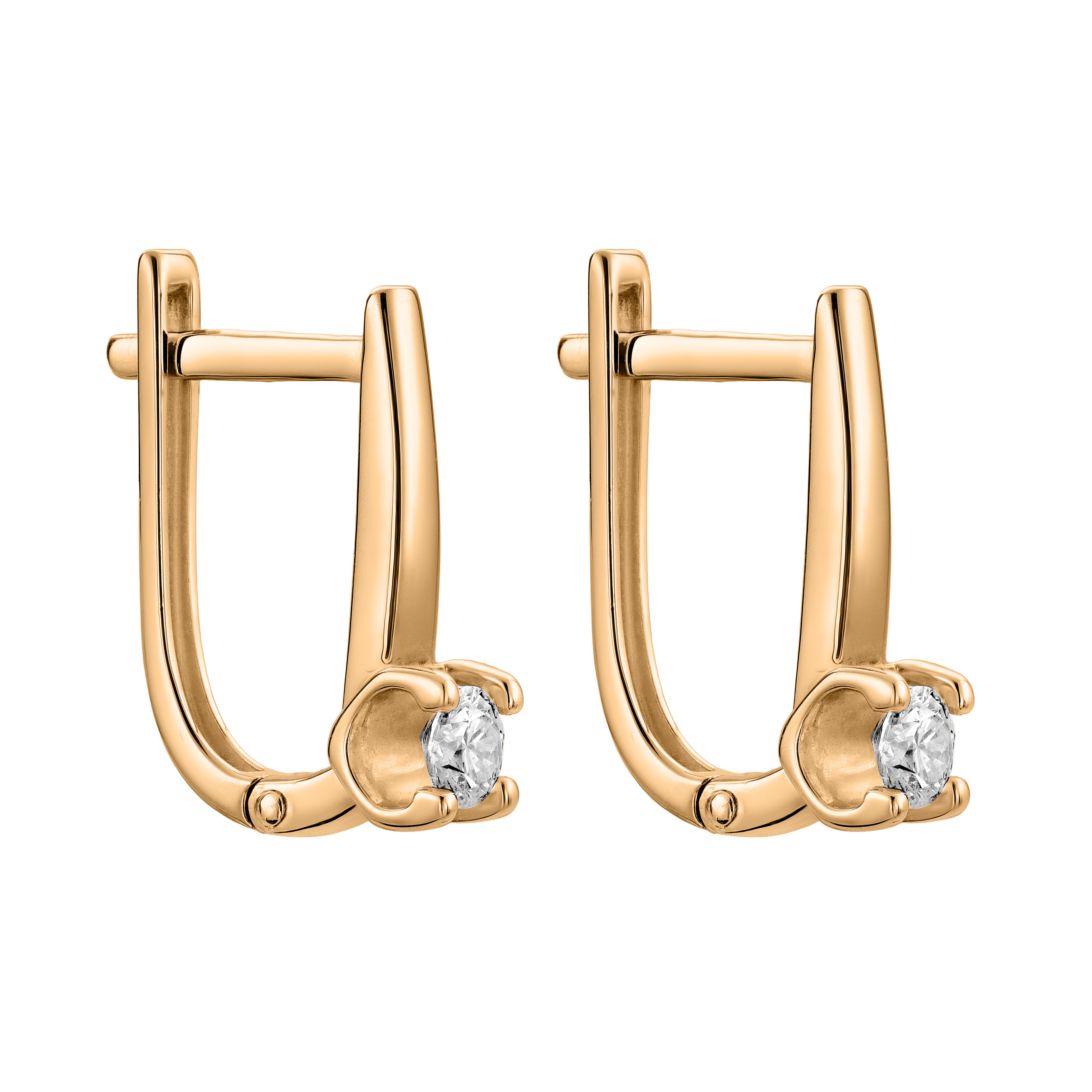 Сережки з червоного золота з діамантом у класичному стилі - 2182687