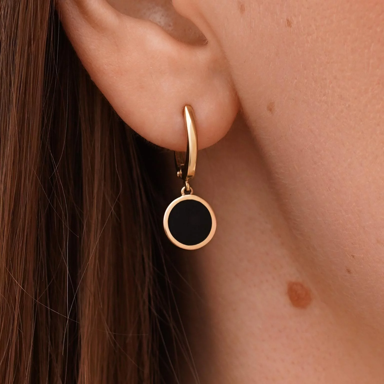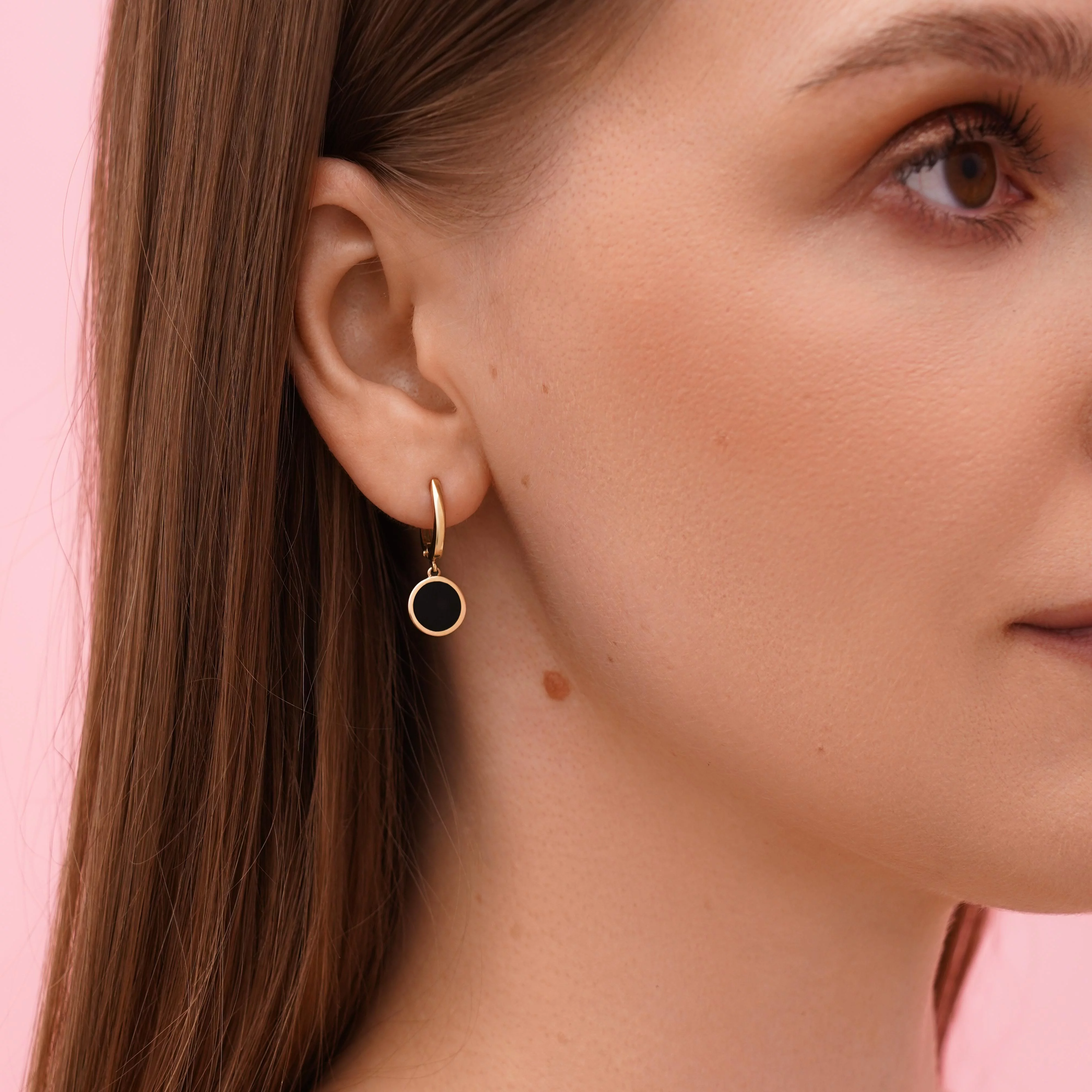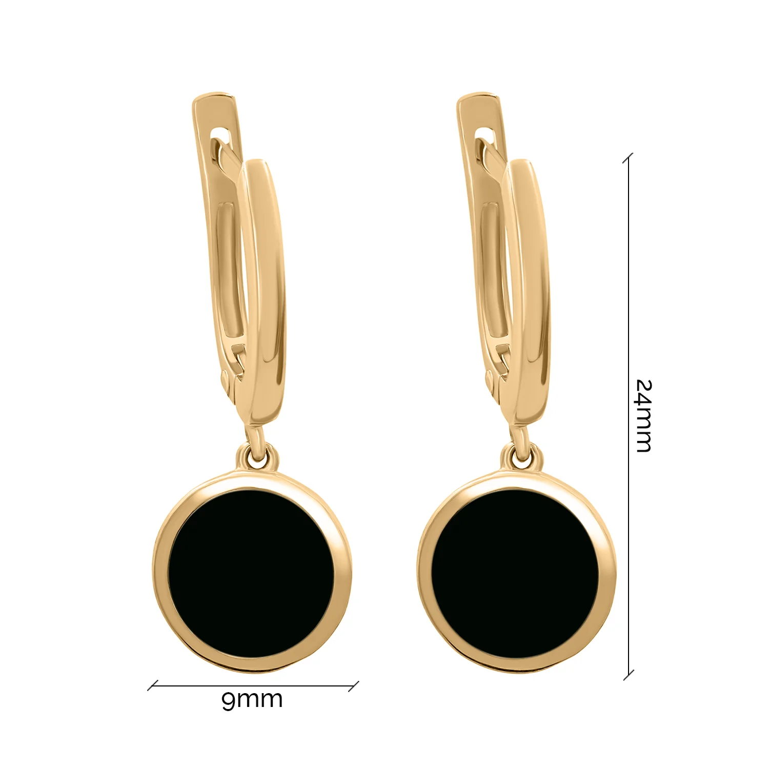 Сережки з підвісом "Кулі" з червоного золота з алмазною гранню та оніксом - 1872773