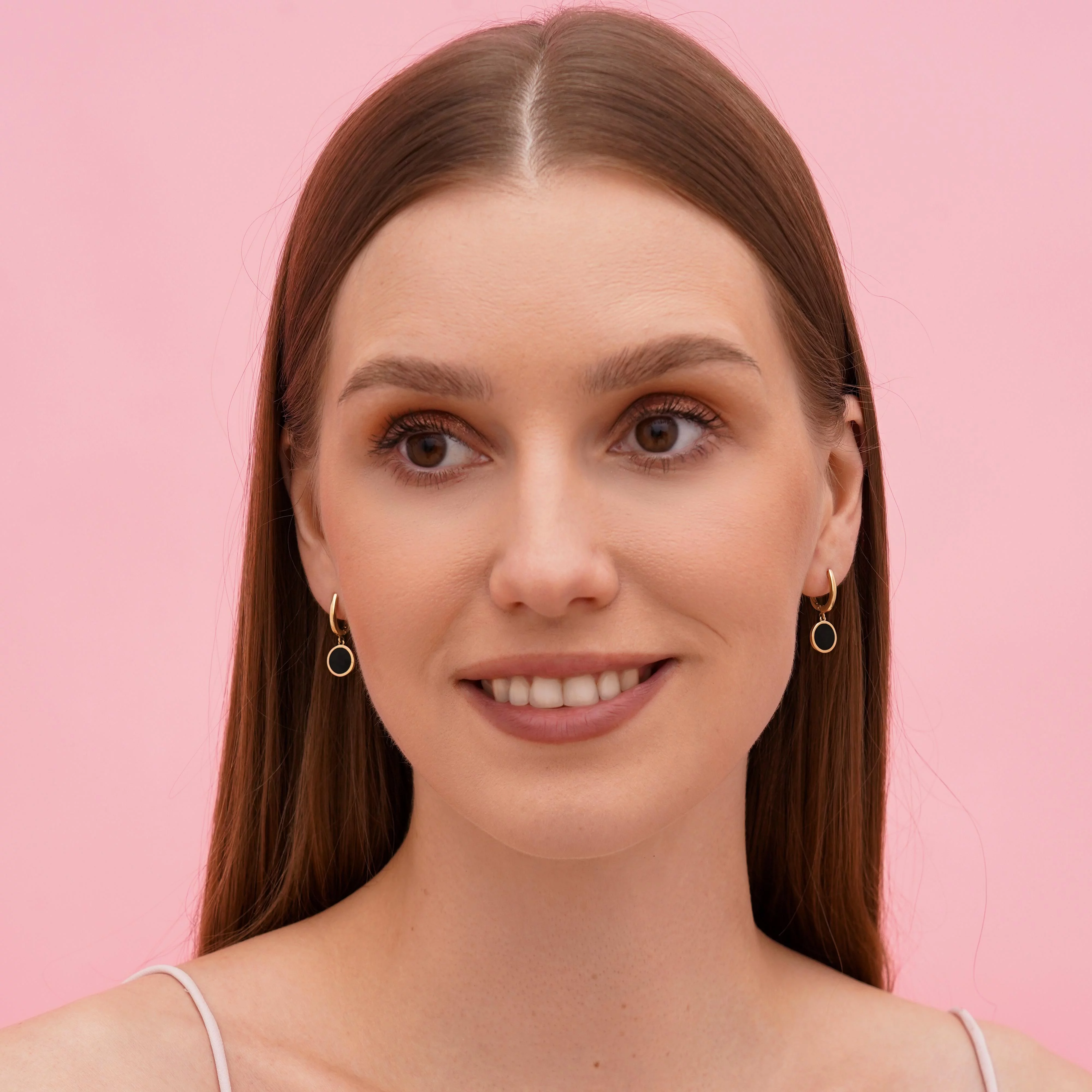 Стильні сережки-пусети "Коло" у червоному золоті з емаллю та фіанітами - 1958570