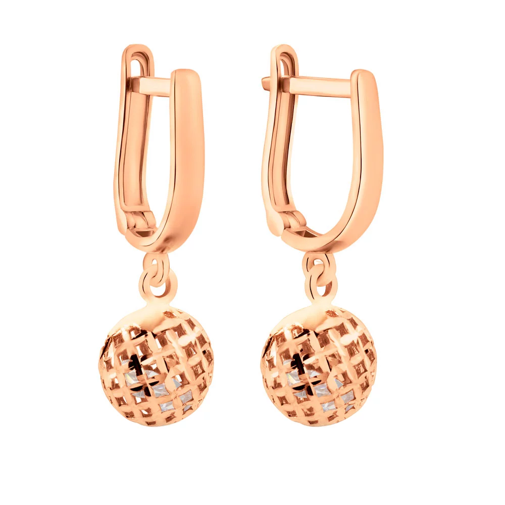 Стильні сережки з підвісами з червоного золота з шпинеллю та фіанітами - 1919552