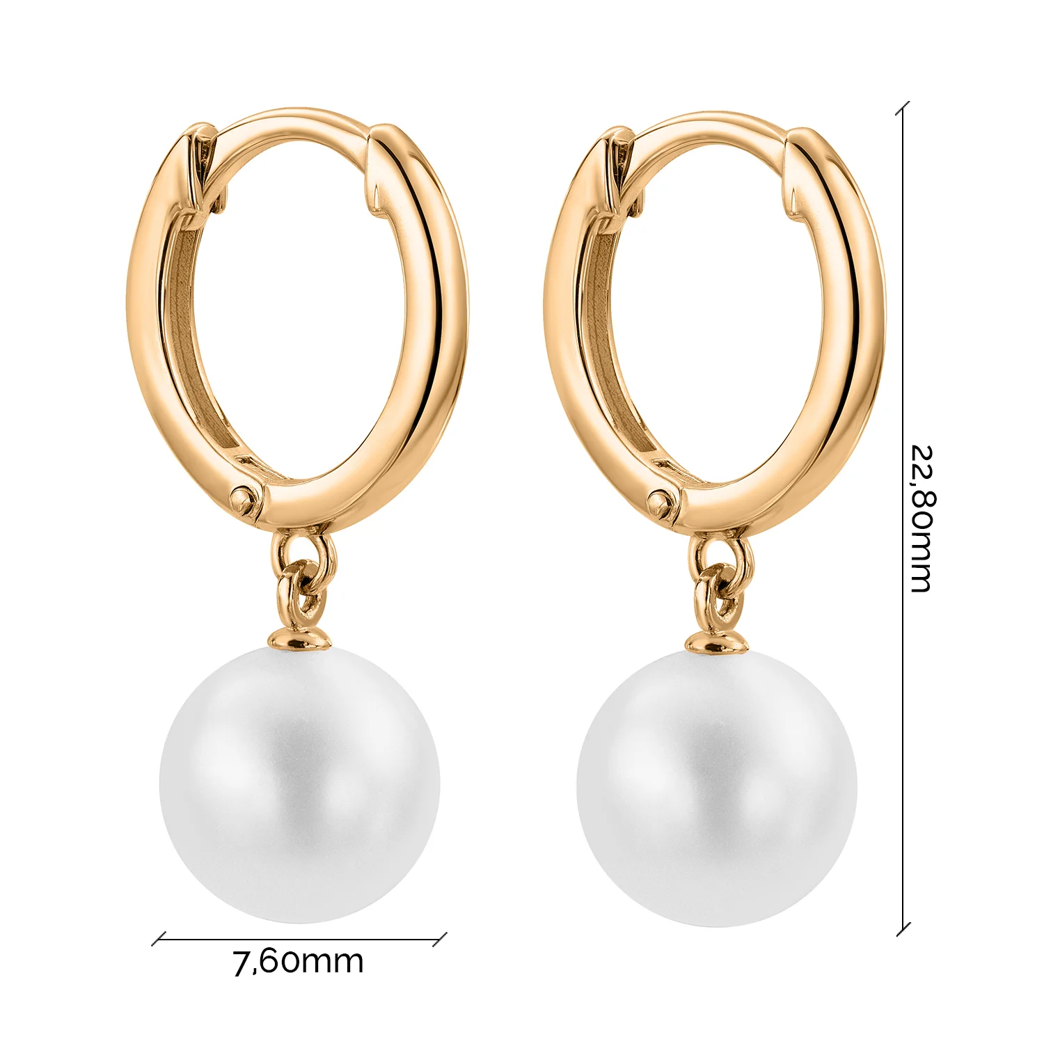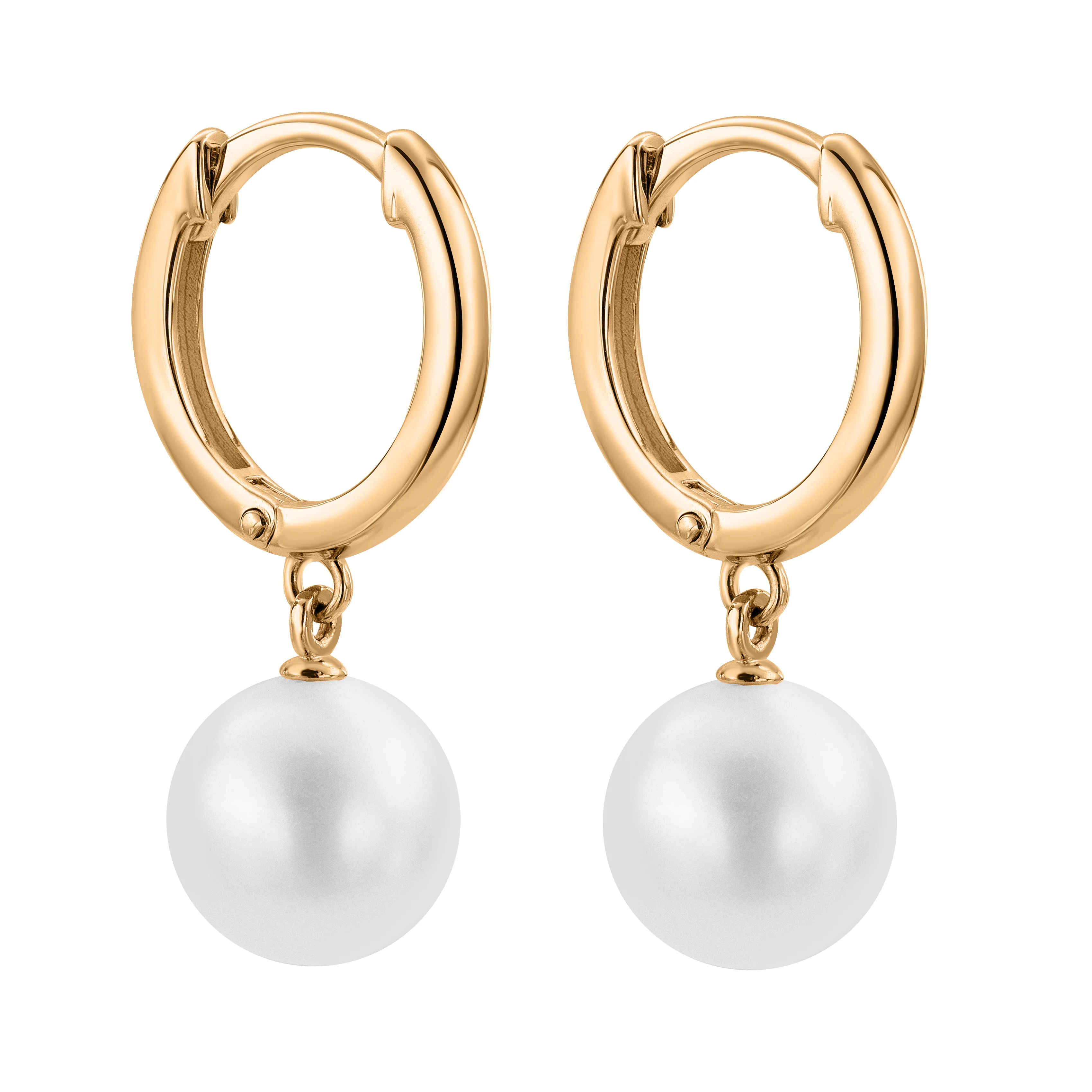 Сережки-кільця з червоного золота з підвісною перлиною - 2183427